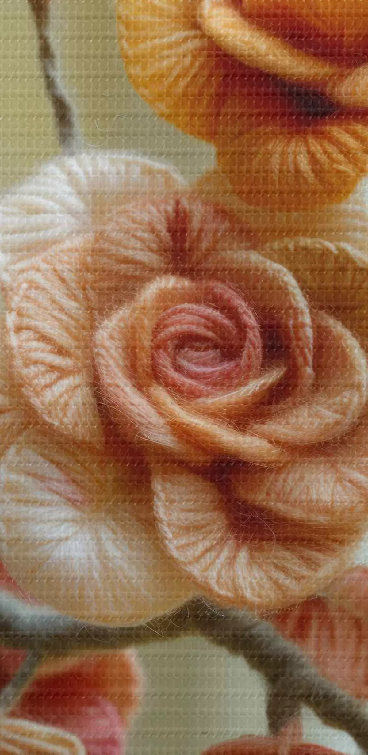 Ronde schilderijen Rozen geweven van zachte, pluizige wol op hout Nr r40674