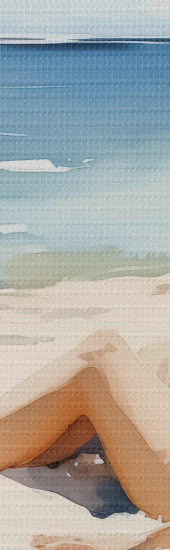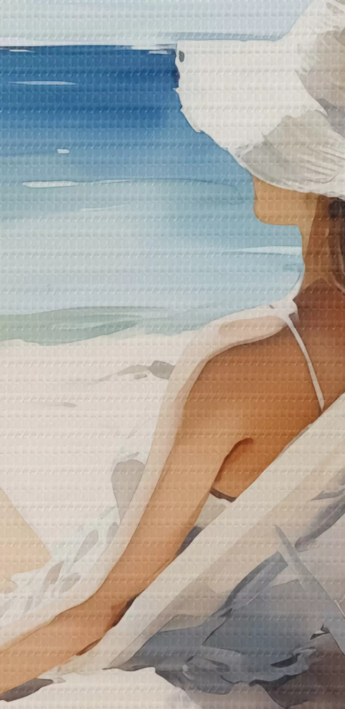 Ronde schilderijen Meisje ontspannend op het strand bij de zee aquarel Nr r40679