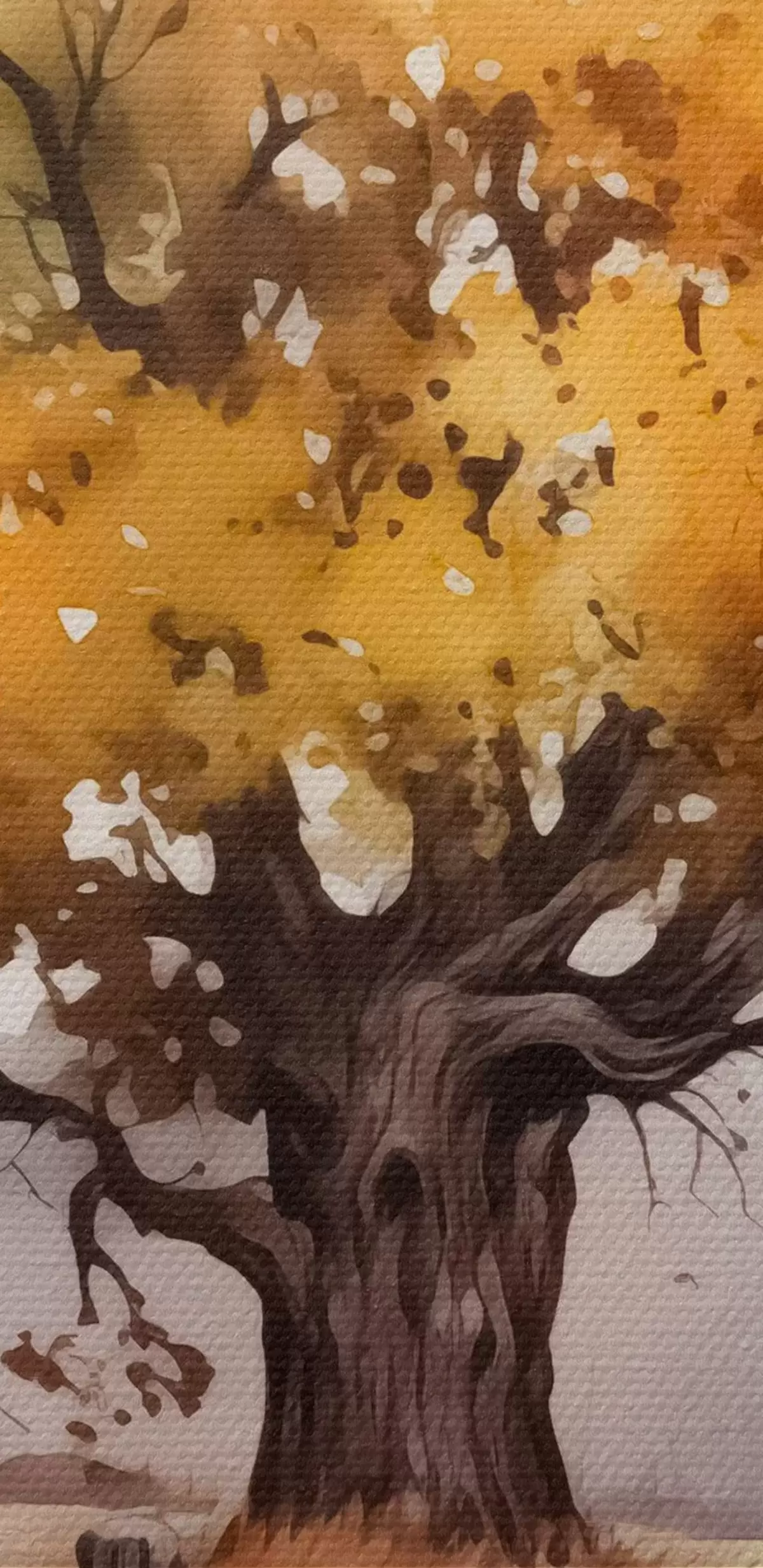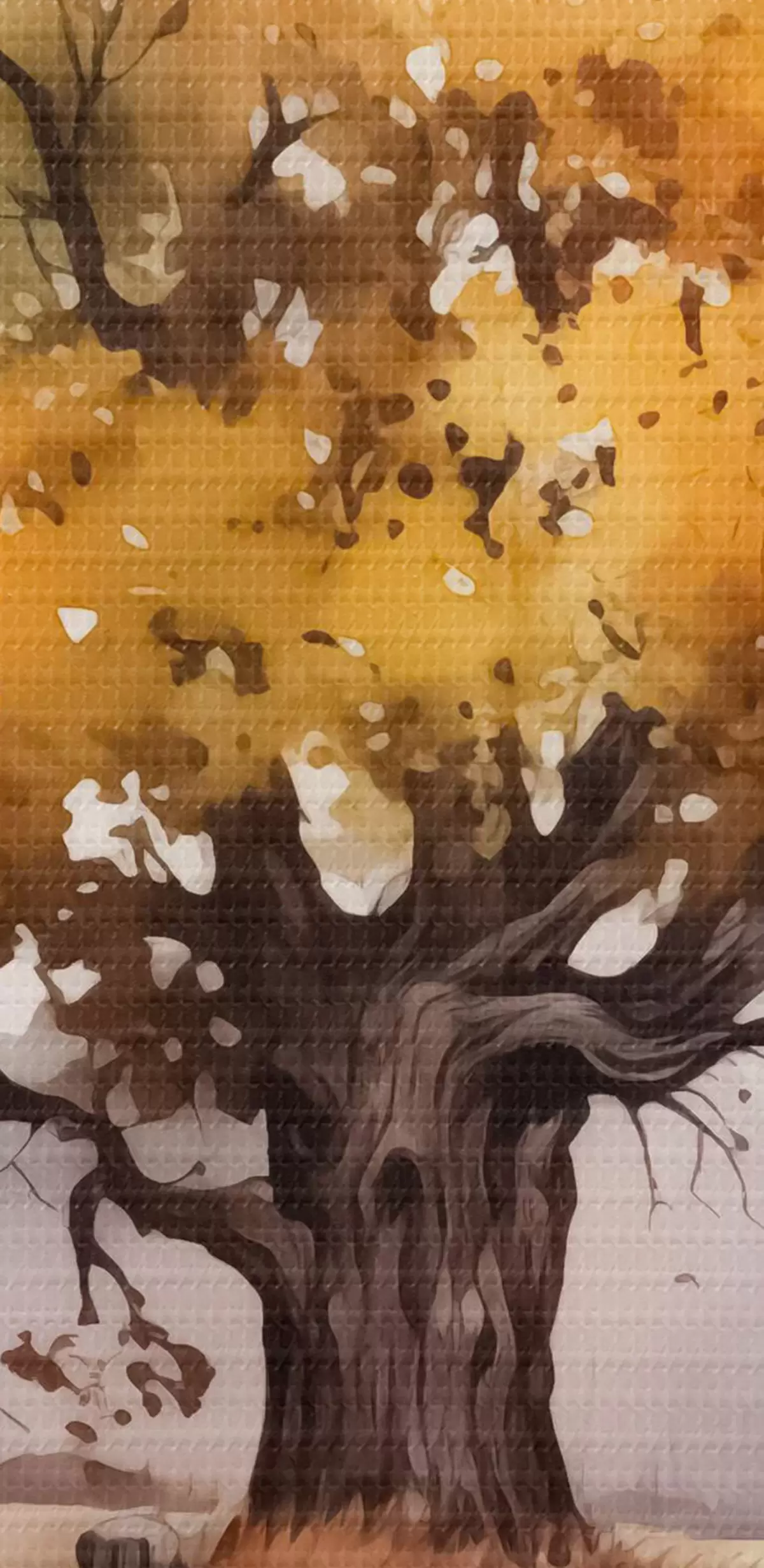 Ronde schilderijen Boom in het veld bij het hek met vergeelde bladeren, herfstlandschap Nr r40680