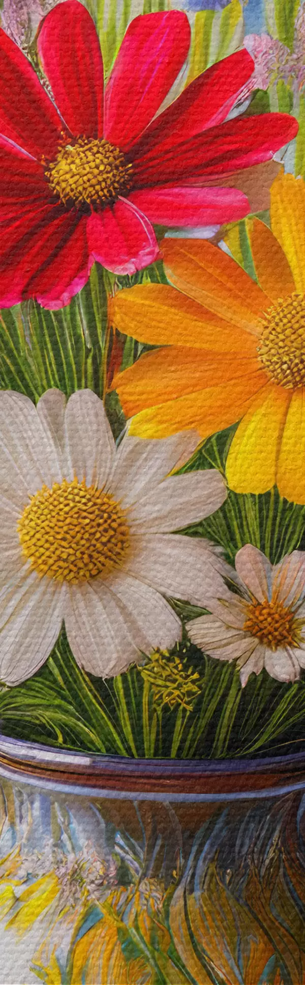 Er zijn drie soorten materiaal te bestellen: Economic Canvas - een dicht en duurzaam materiaal voor digitaal printen, identiek aan schildersdoek, waterdicht oppervlak, realistische weergave van details, materiaal met gemiddelde korrel. Premium Canvas - de textuur lijkt op die van schildersdoek (verweven kleine draden). Zachte, gedetailleerde reproductie van de afbeelding op een mat oppervlak. Eco-Premium - hoogwaardige 100% katoenen stof. Dankzij de natuurlijke katoenvezels is het materiaal duurzaam en slijtvast. Uitstekende kleurweergave en detail.