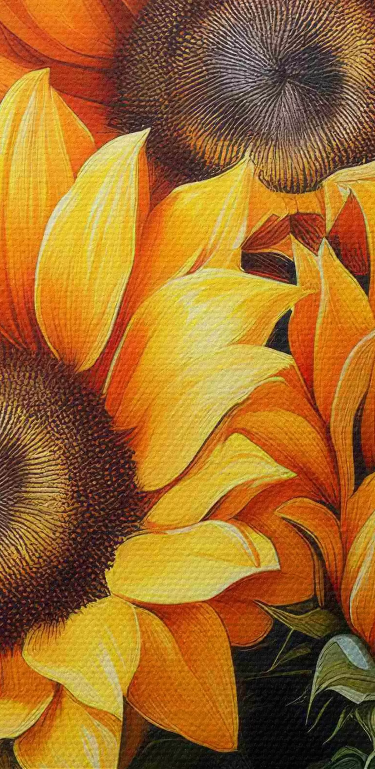 Ronde schilderijen grote zonnebloemen, gele zonnebloemen r40710