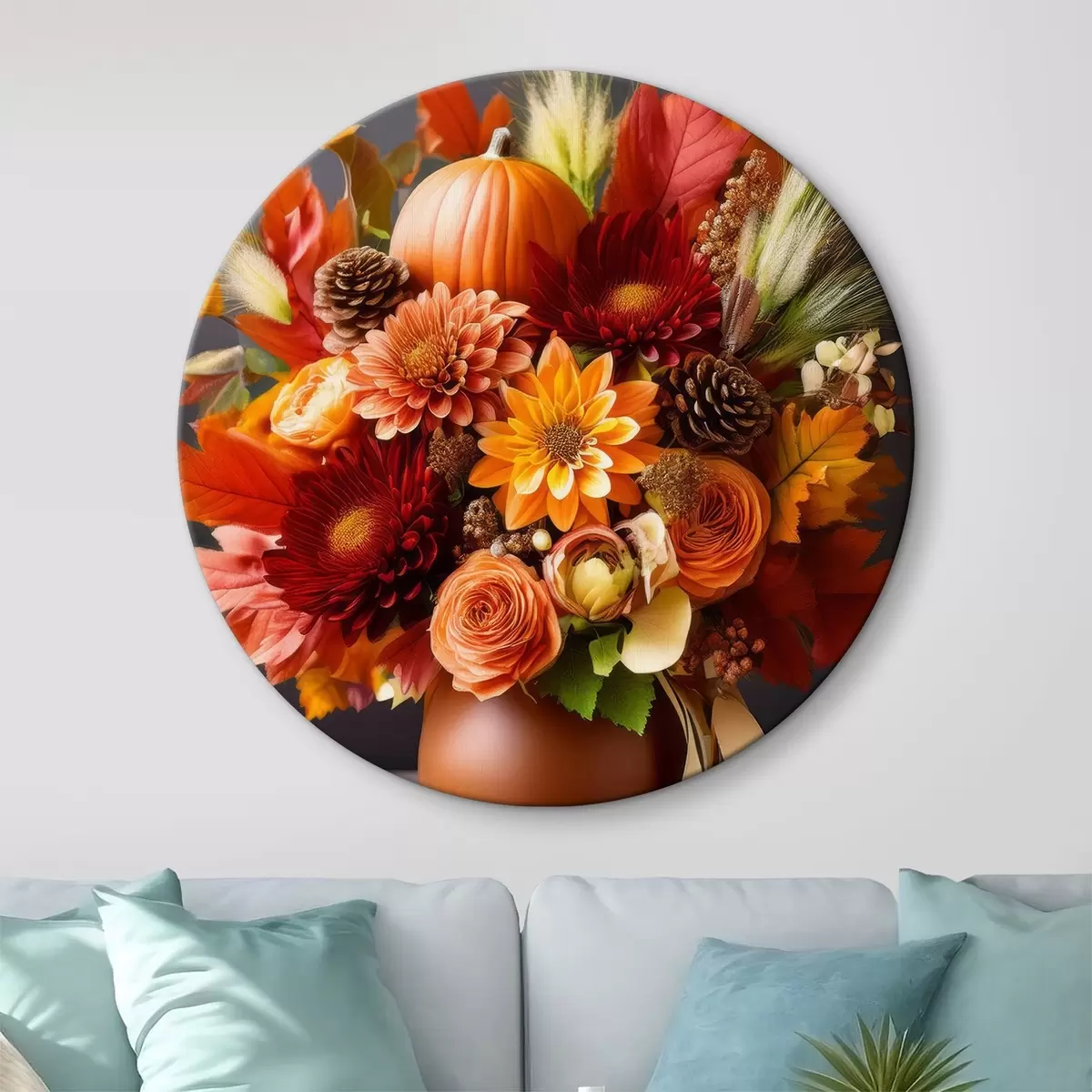Ronde schilderijen herfstboeket, herfstbloemen r40714