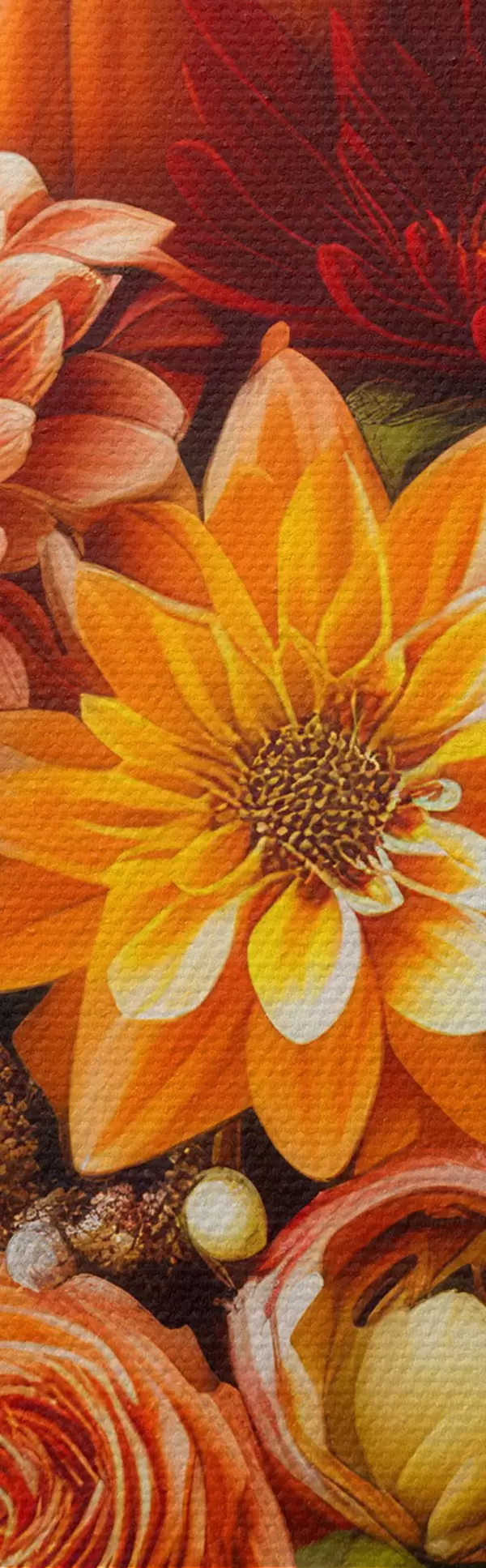 Er zijn drie soorten materiaal te bestellen: Economic Canvas - een dicht en duurzaam materiaal voor digitaal printen, identiek aan schildersdoek, waterdicht oppervlak, realistische weergave van details, materiaal met gemiddelde korrel. Premium Canvas - de textuur lijkt op die van schildersdoek (verweven kleine draden). Zachte, gedetailleerde reproductie van de afbeelding op een mat oppervlak. Eco-Premium - hoogwaardige 100% katoenen stof. Dankzij de natuurlijke katoenvezels is het materiaal duurzaam en slijtvast. Uitstekende kleurweergave en detail.