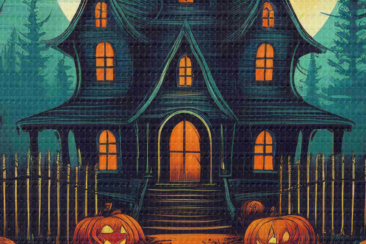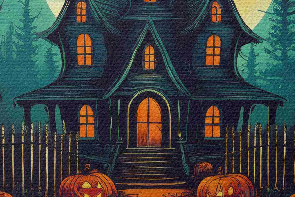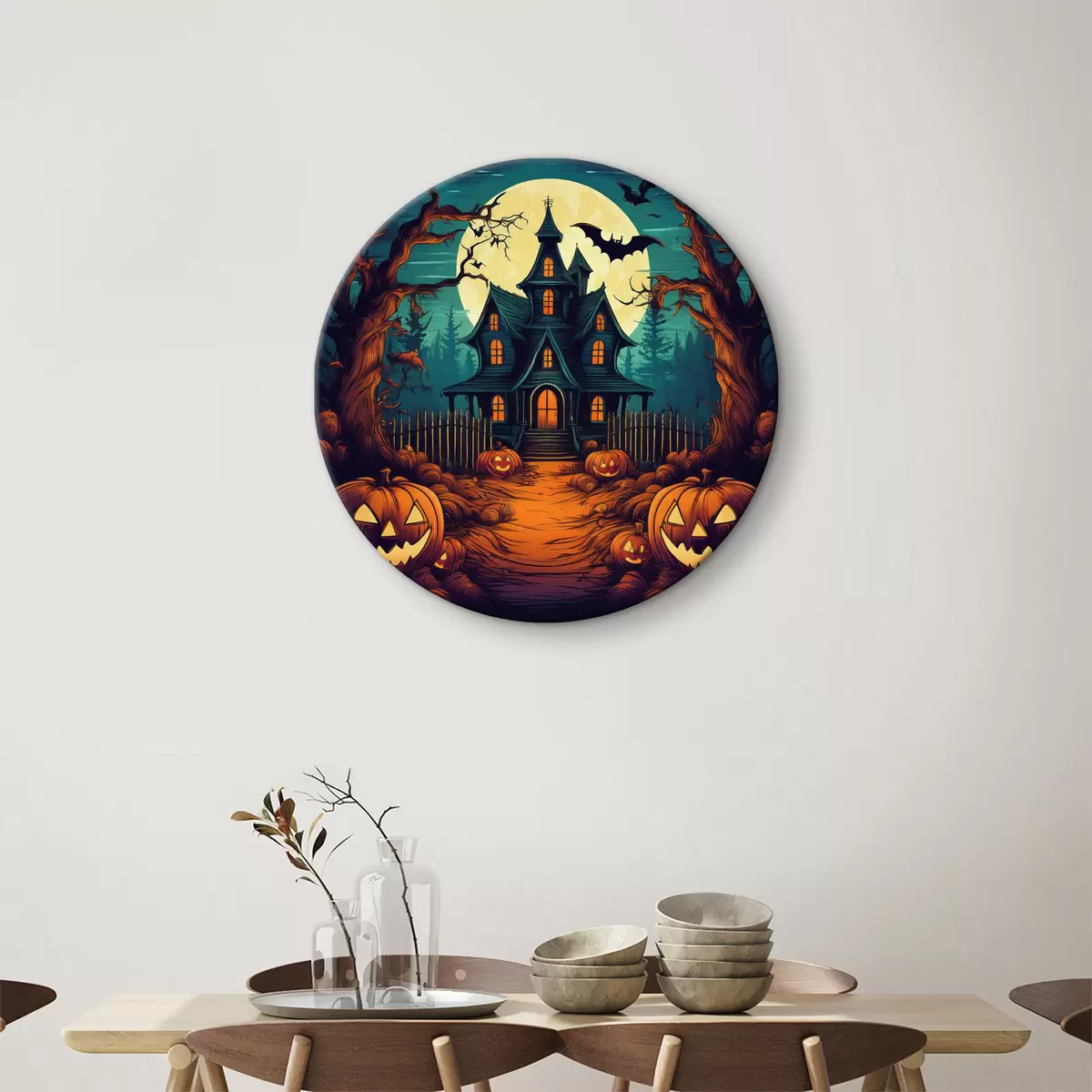 Ronde schilderijen Halloween, kasteel in het bos, horror, vleermuizen Nr r40715