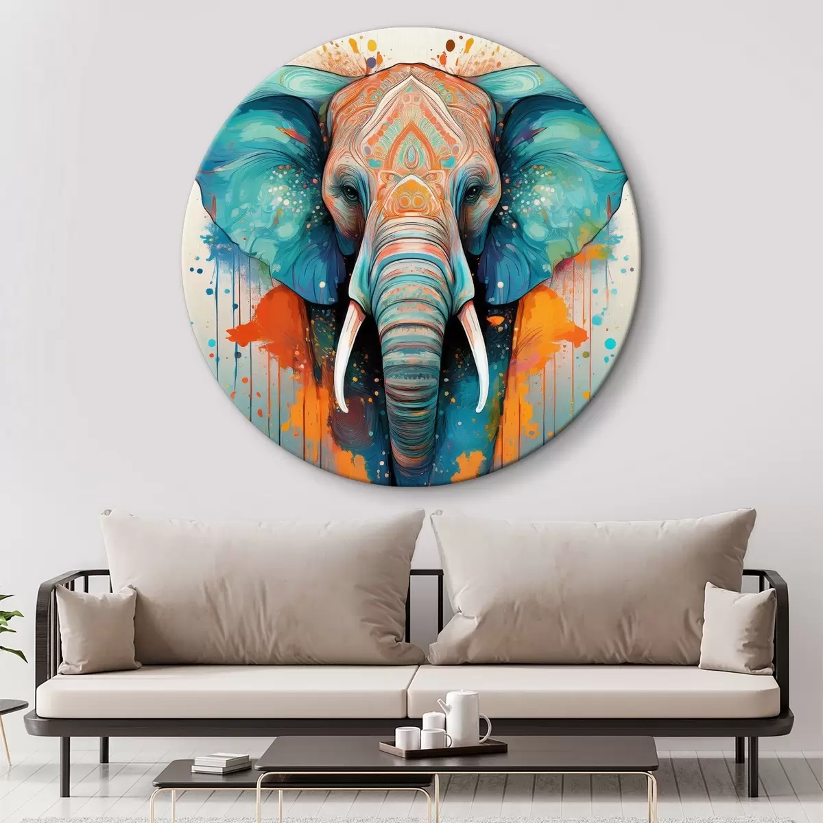 Ronde schilderijen olifant en verfschilfers Nr r40717