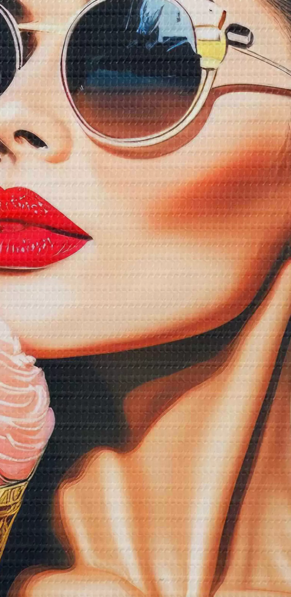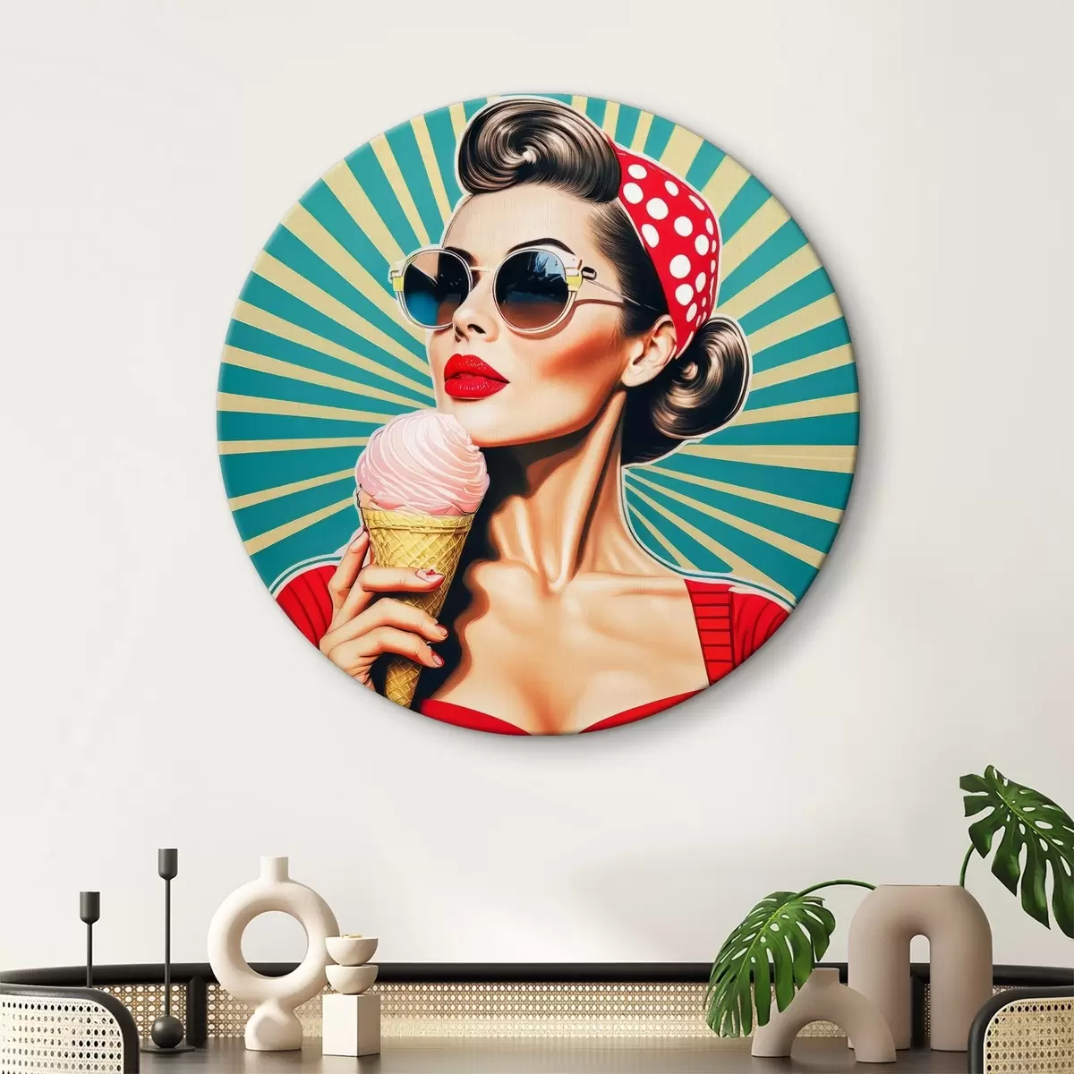 Ronde schilderijen meisje met ijs, pop-art, pin-up, retro Nr r40718