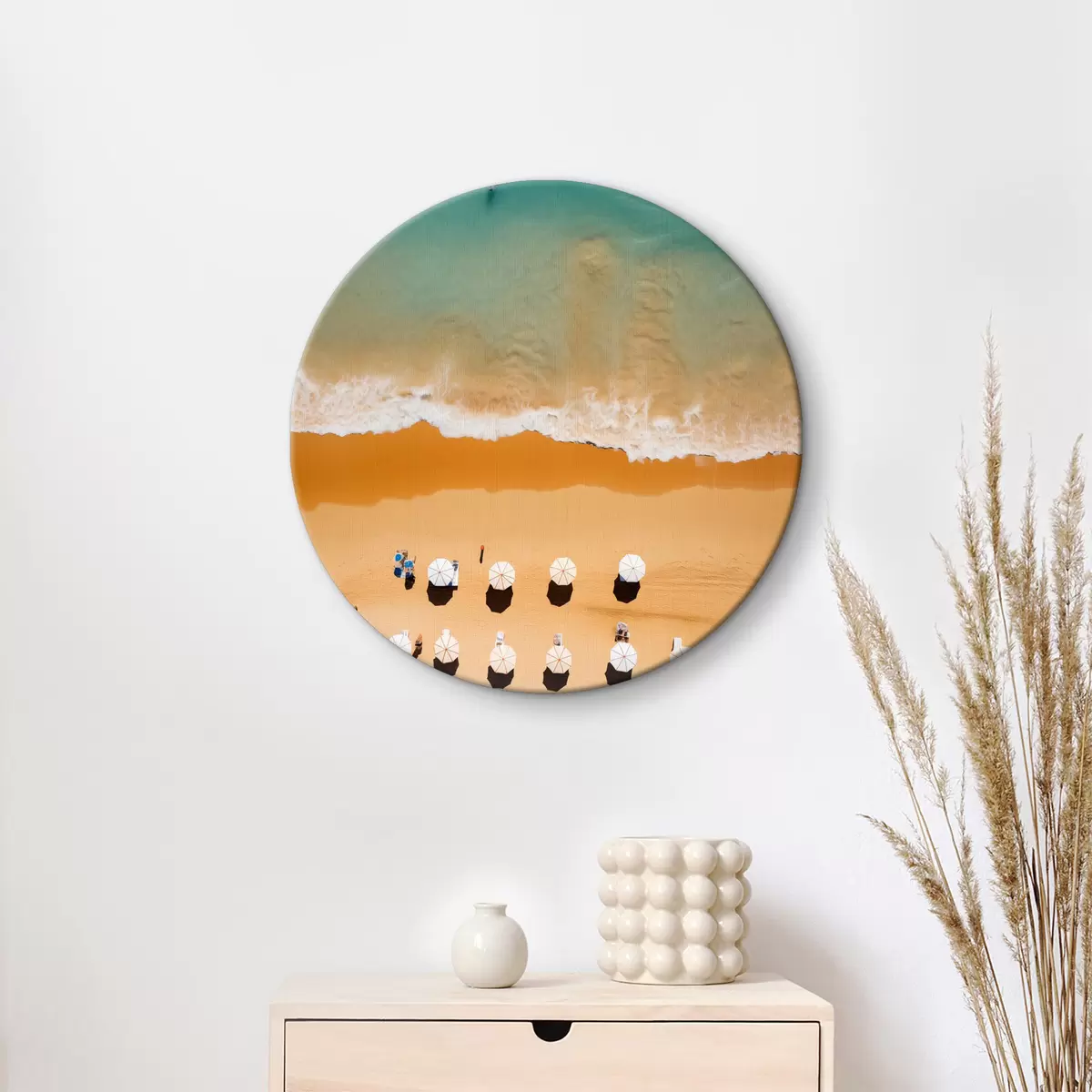 Ronde schilderijen Minimalistisch landschapszicht vanaf de zee en het strand Nr r40725