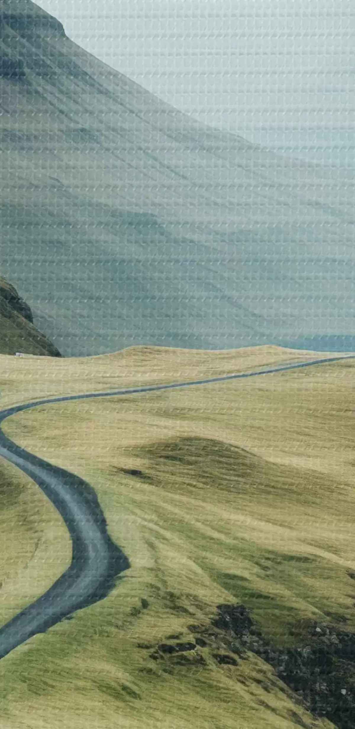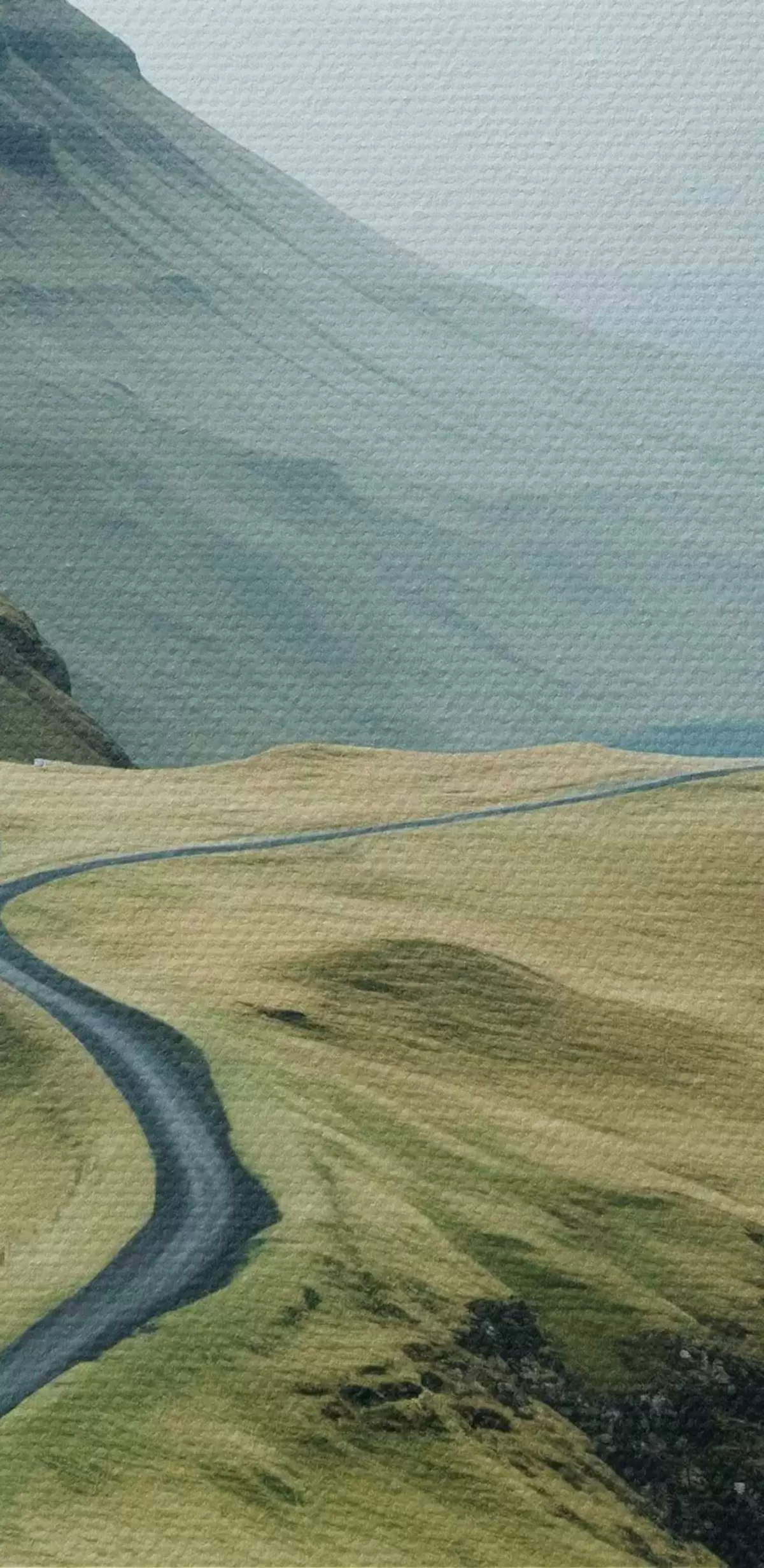 Ronde schilderijen Minimalistisch weglandschap op de Faeröer aan zee Nr r40726