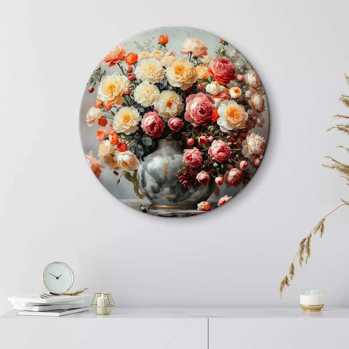 Ronde schilderijen Een boeket fleurige bloemen in een vaas Nr r40733