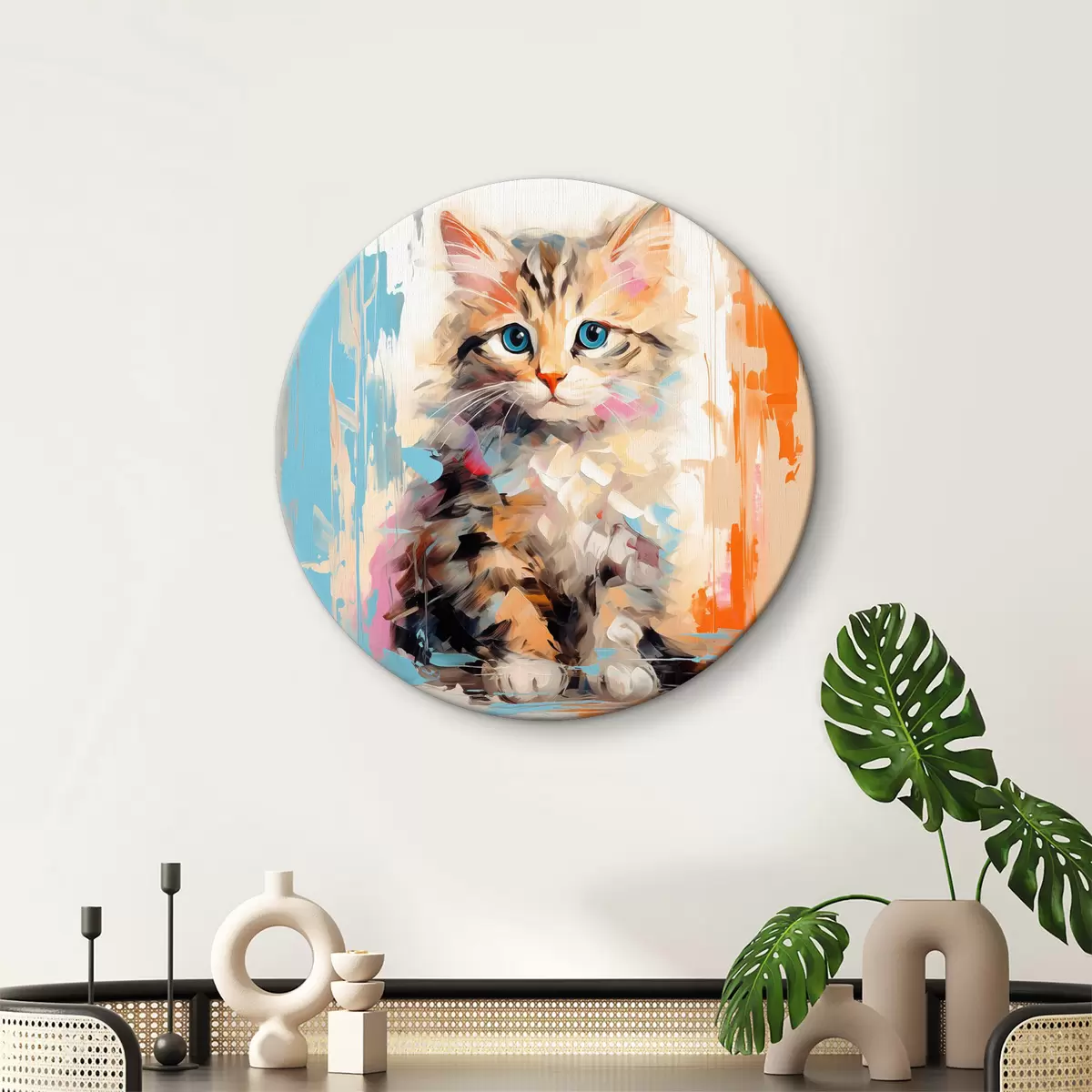 Ronde schilderijen Poesje met penseelstreken Nr r40735
