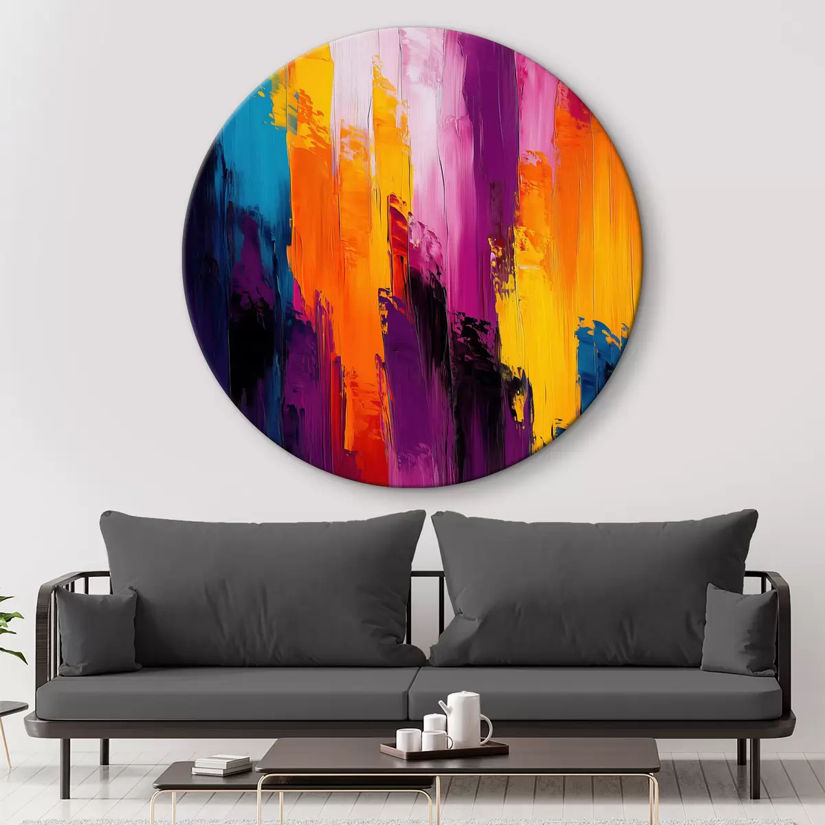 Ronde schilderijen Abstractie met kleurrijke verfstreken r40736