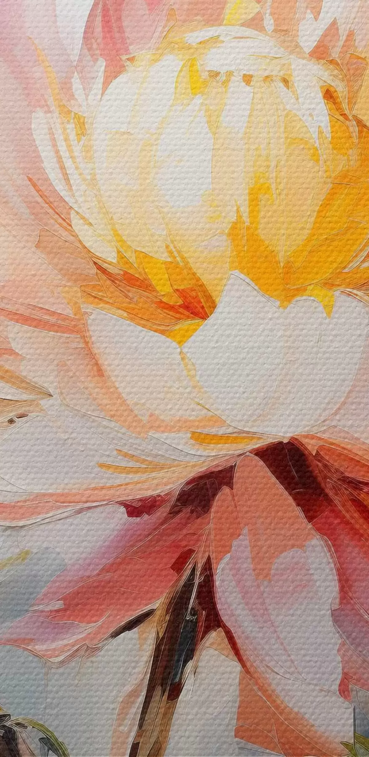 Het schilderij kan direct na ontvangst worden opgehangen. Het schilderij wordt opgespannen op een 2 cm breed houten spieraam.