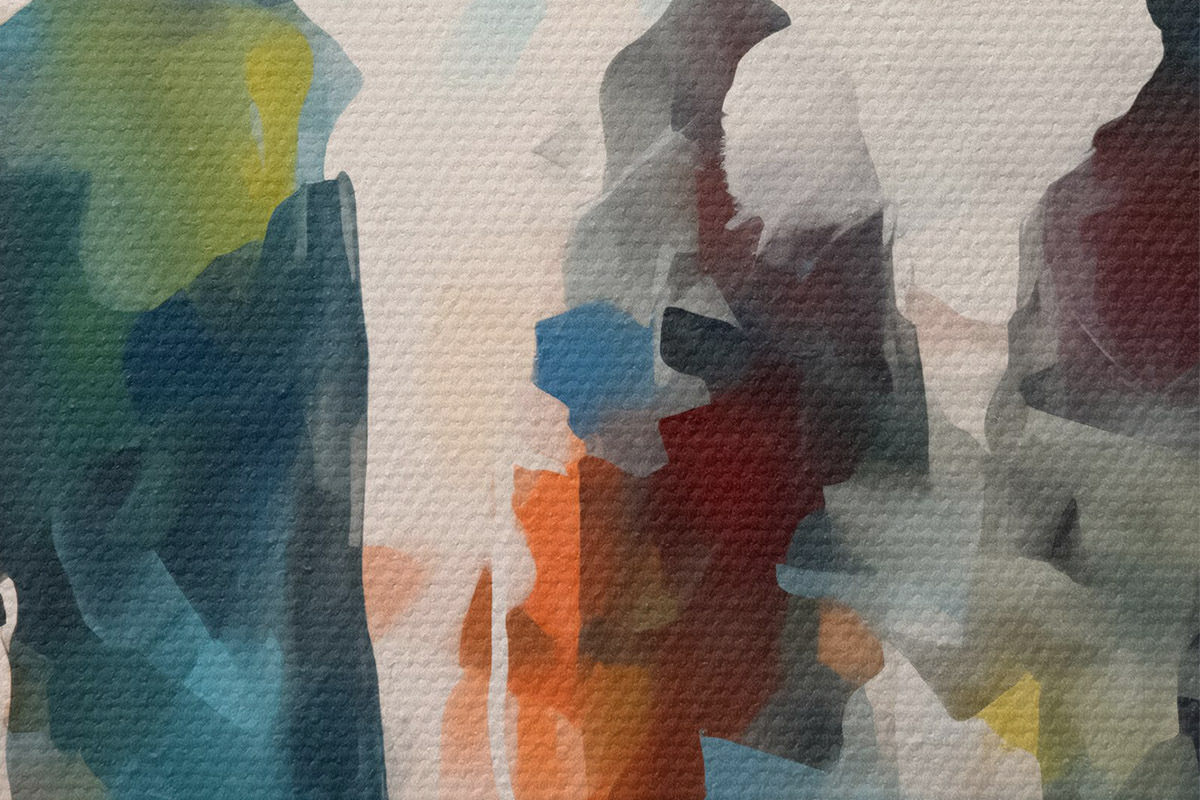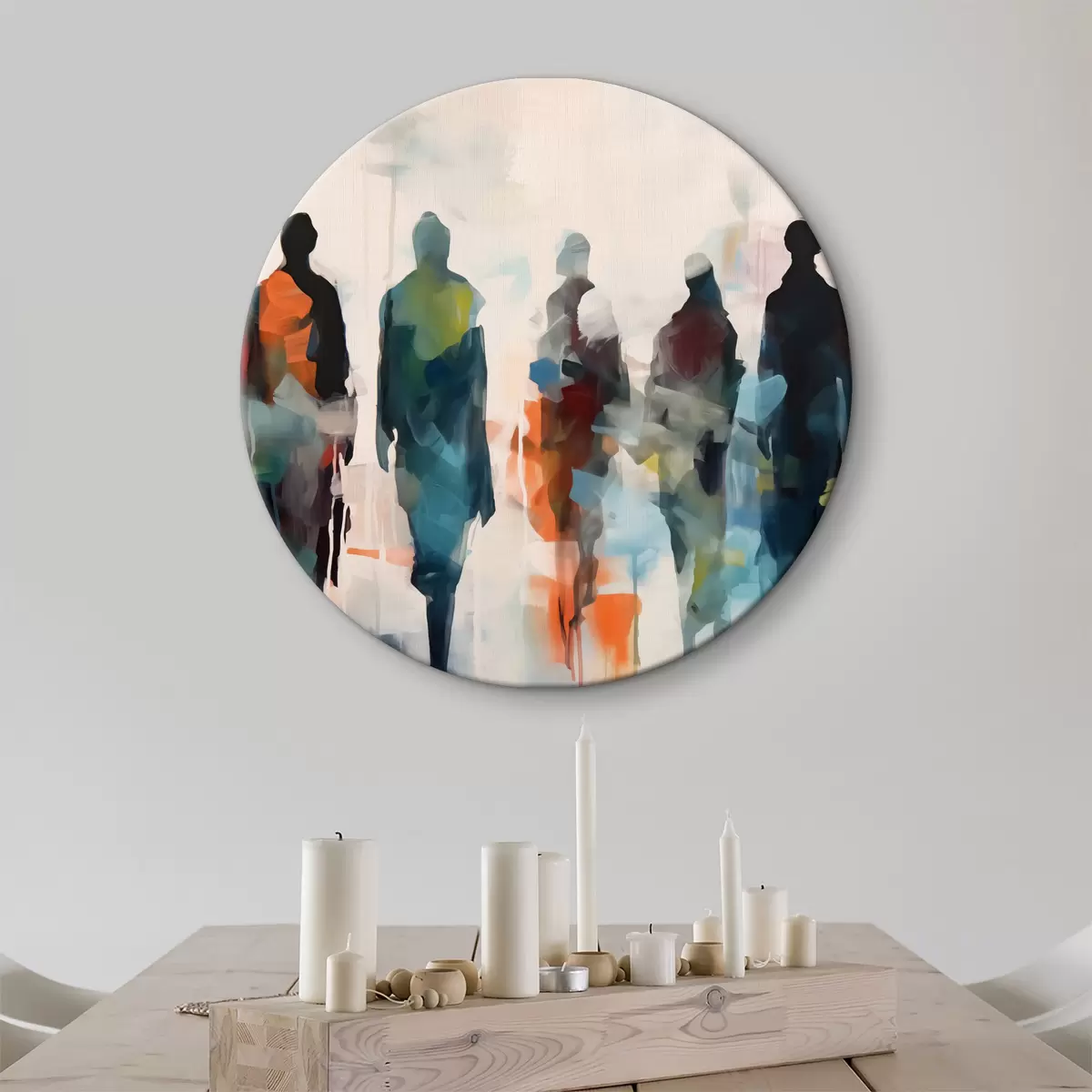 Ronde schilderijen Silhouetten van een groep abstracte mensen, imitatie van penseelstreken r40752