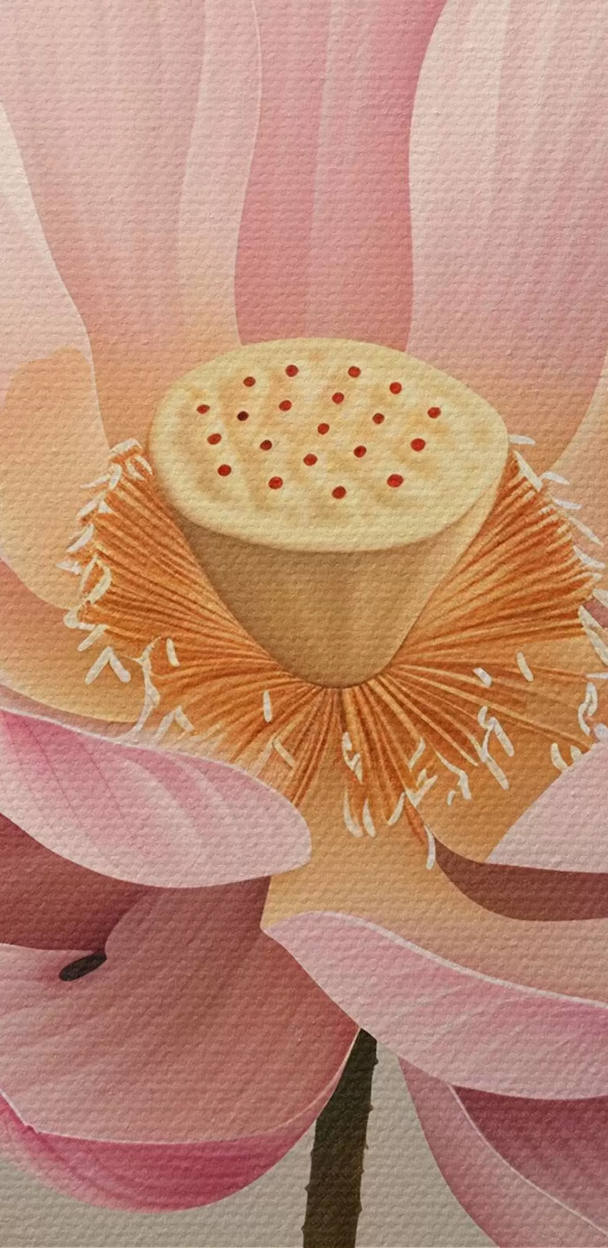 Ronde schilderijen Roze lotus op een beige achtergrond Nr r40769