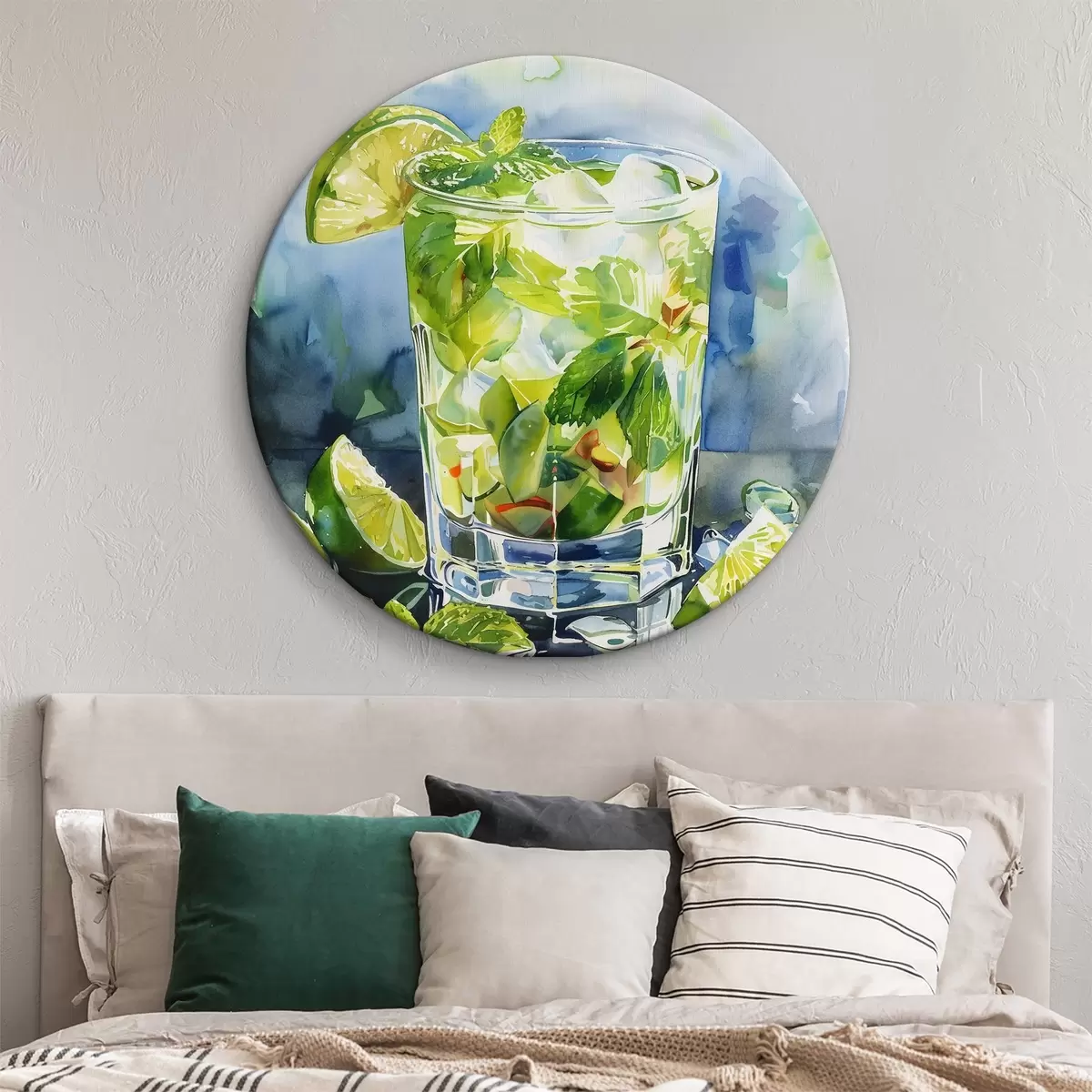 Ronde schilderijen Mojito drinken in aquarelstijl Nr r40774