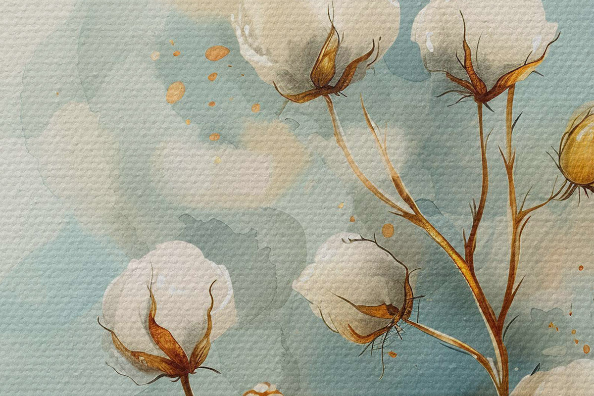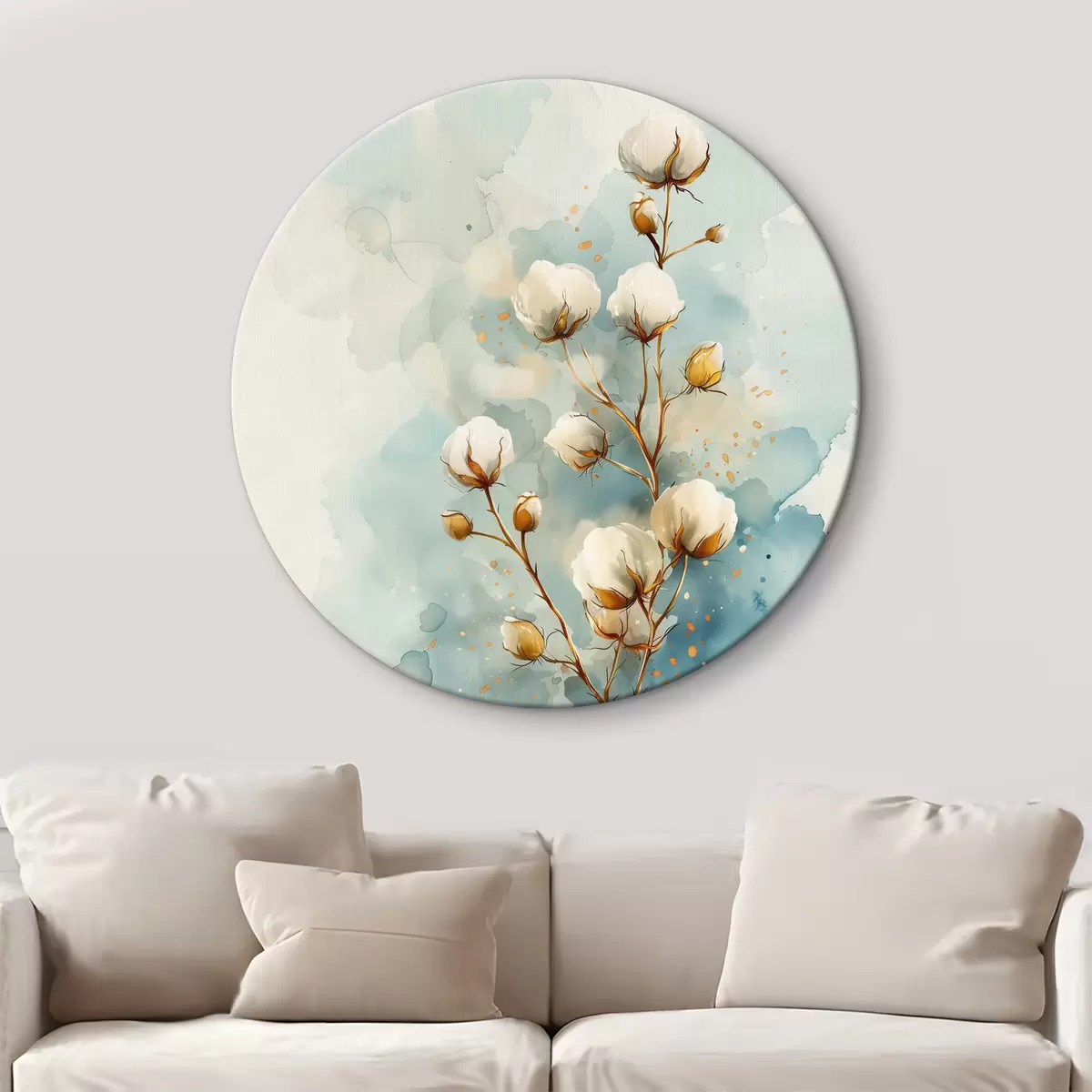 Ronde schilderijen Een takje katoen op een aquarelachtergrond Nr r40780