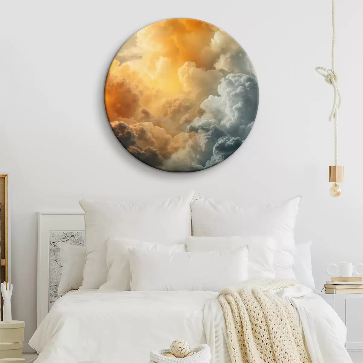 Ronde schilderijen Wolken, donkerblauw, oranje, antiek r40785