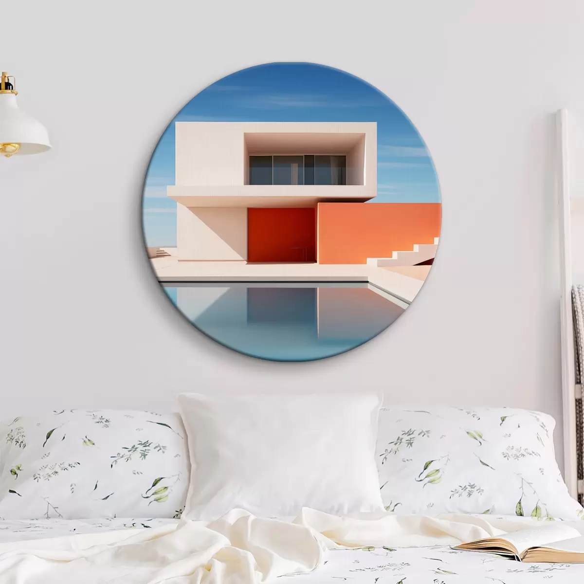 Ronde schilderijen Minimalistisch architectonisch landschap, huis en zwembad Nr r40811