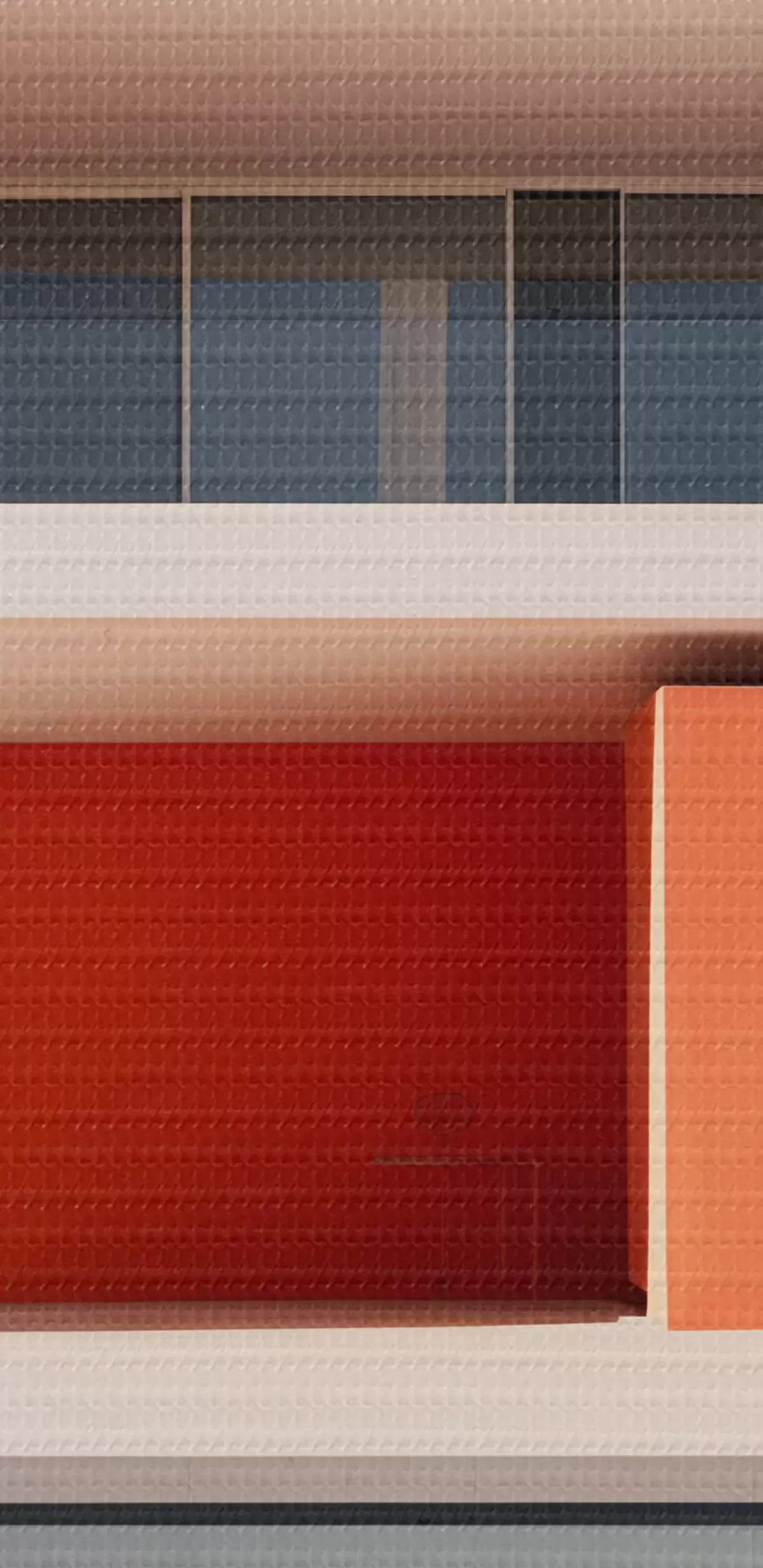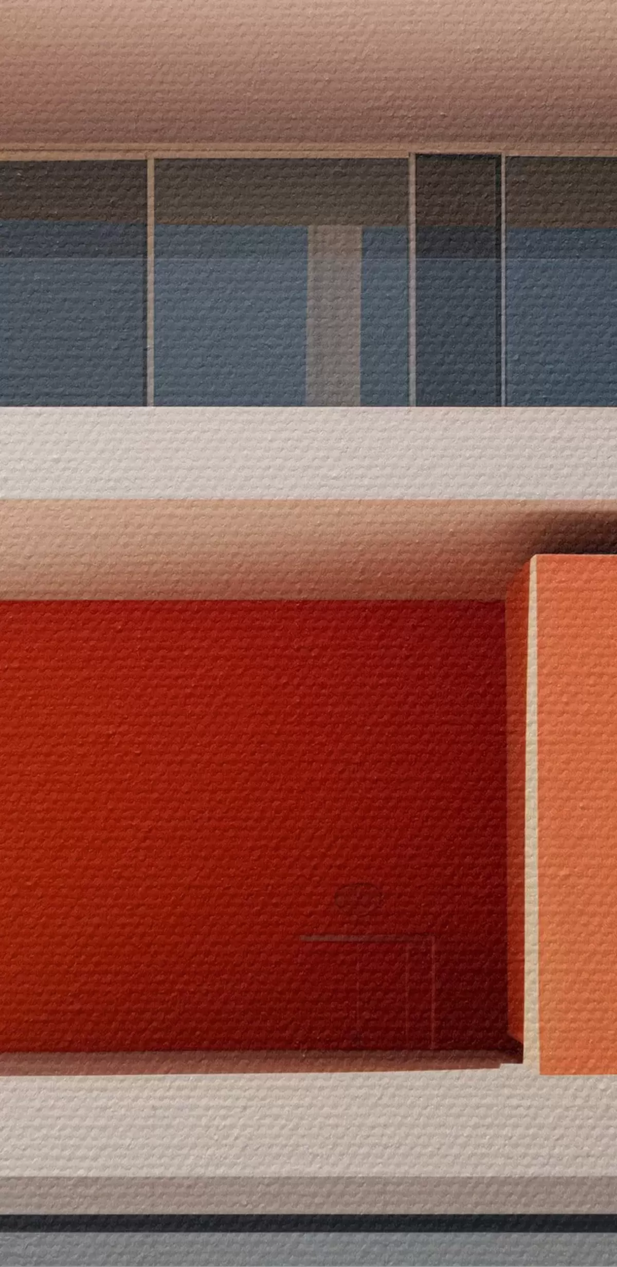 Ronde schilderijen Minimalistisch architectonisch landschap, huis en zwembad Nr r40811