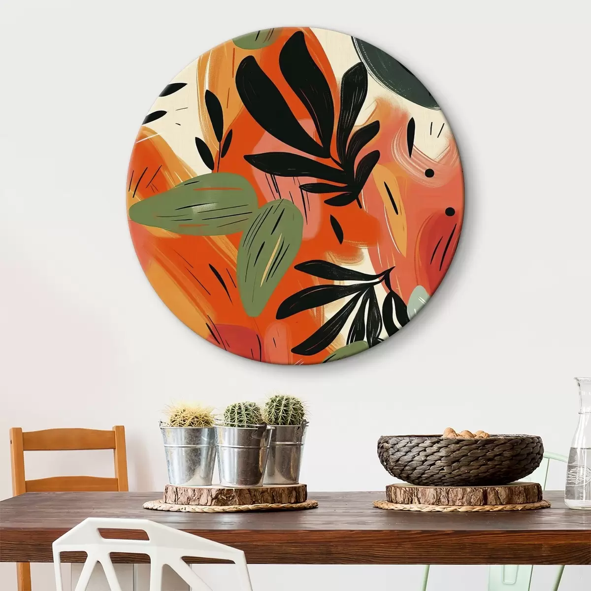 Ronde schilderijen Abstracte print met bloemen en bladeren Nr r40812
