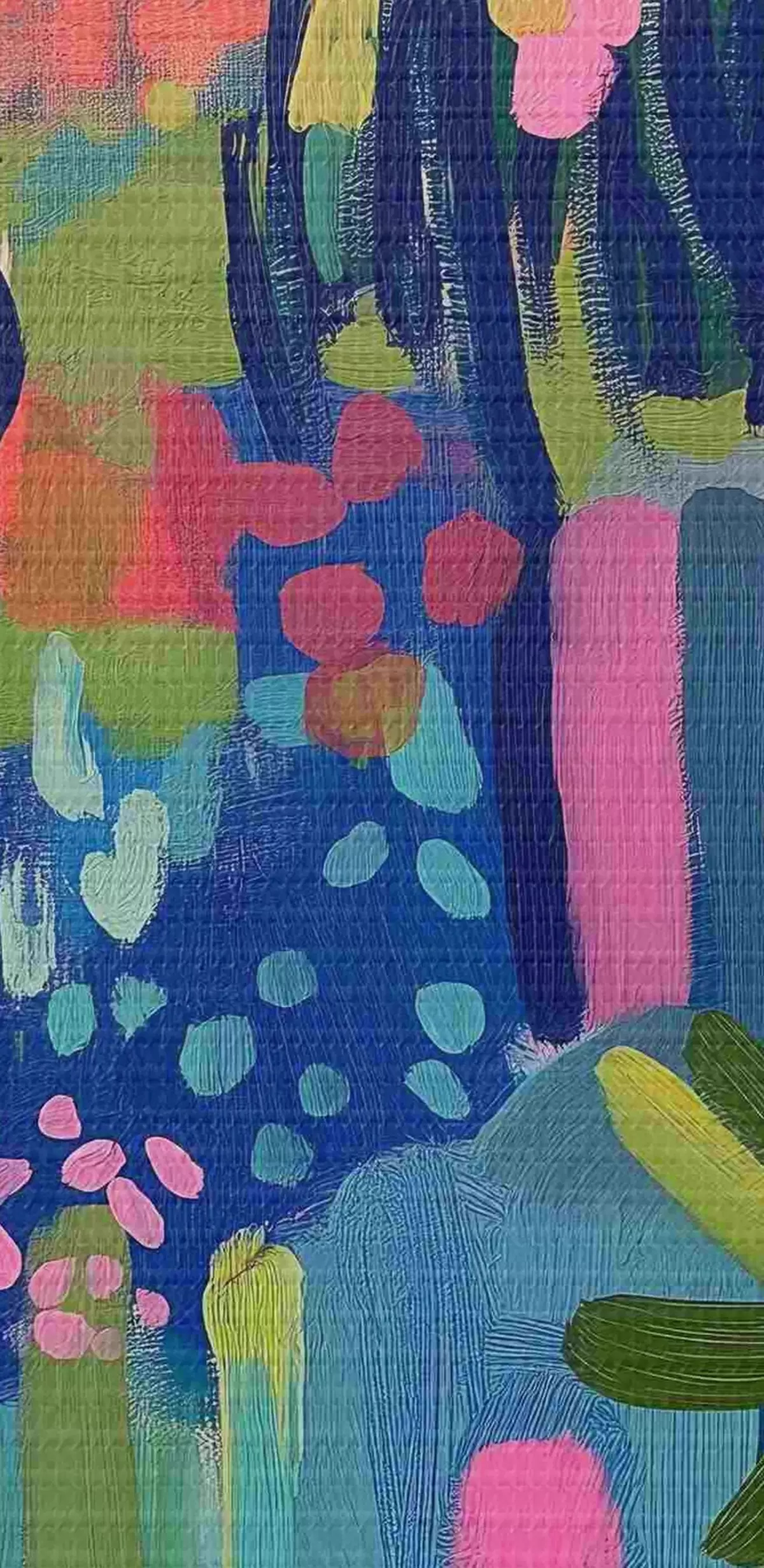 Het schilderij kan direct na ontvangst worden opgehangen. Het schilderij wordt opgespannen op een 2 cm breed houten spieraam.