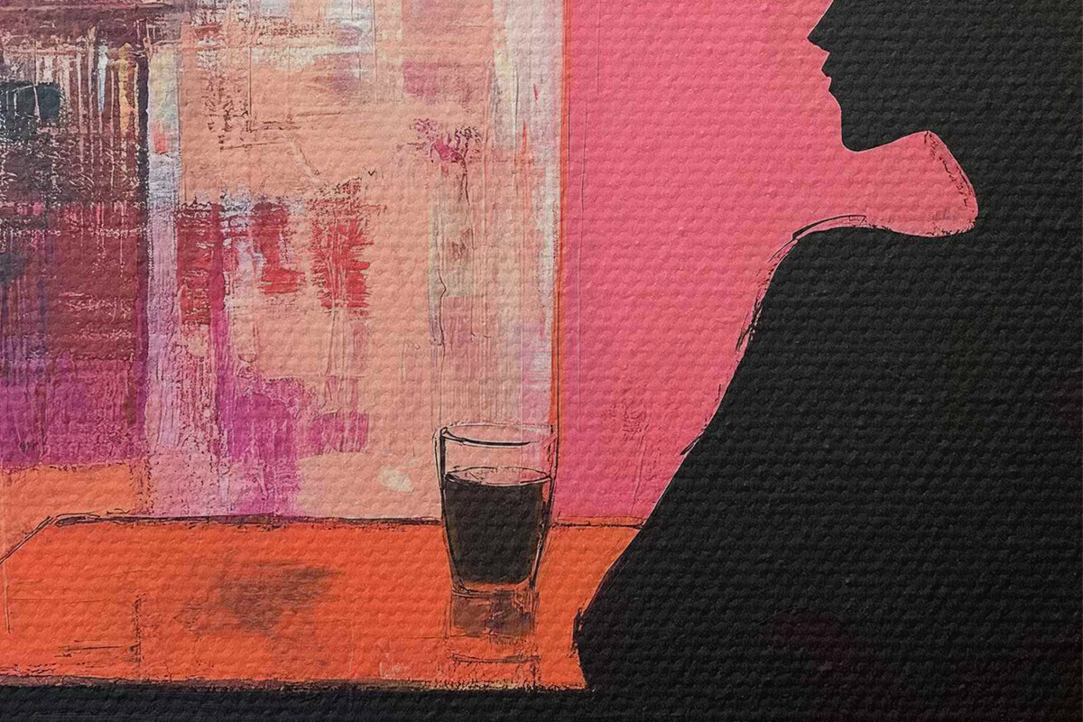 Ronde schilderijen Meisje met een glas wijn Nr r40829