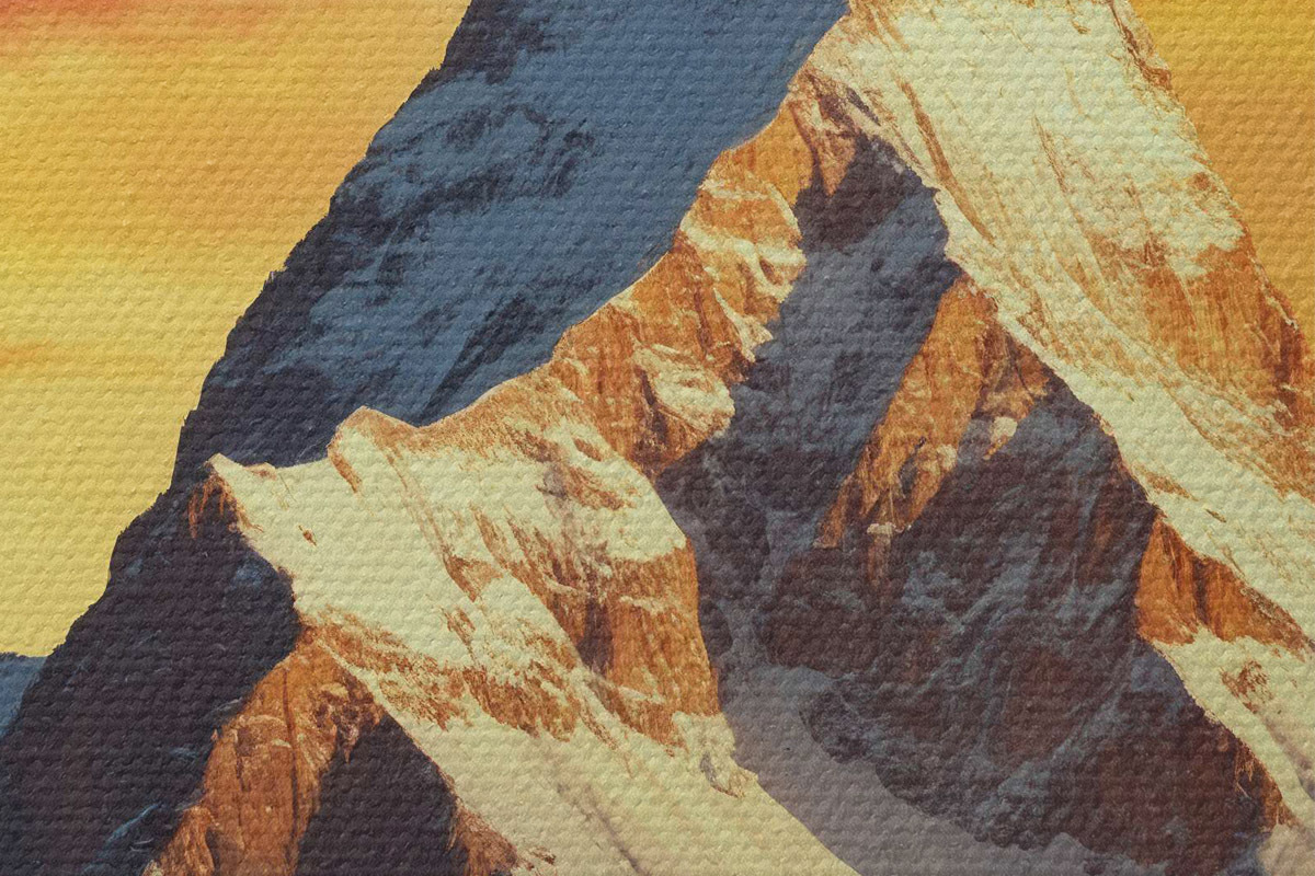 Er zijn drie soorten materiaal te bestellen: Economic Canvas - een dicht en duurzaam materiaal voor digitaal printen, identiek aan schildersdoek, waterdicht oppervlak, realistische weergave van details, materiaal met gemiddelde korrel. Premium Canvas - de textuur lijkt op die van schildersdoek (verweven kleine draden). Zachte, gedetailleerde reproductie van de afbeelding op een mat oppervlak. Eco-Premium - hoogwaardige 100% katoenen stof. Dankzij de natuurlijke katoenvezels is het materiaal duurzaam en slijtvast. Uitstekende kleurweergave en detail.
