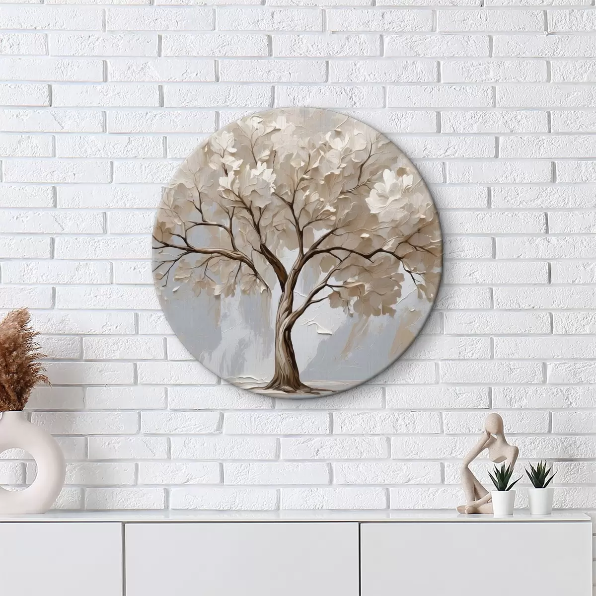 Ronde schilderijen Witte boom op abstracte olieverfachtergrond Nr r40860