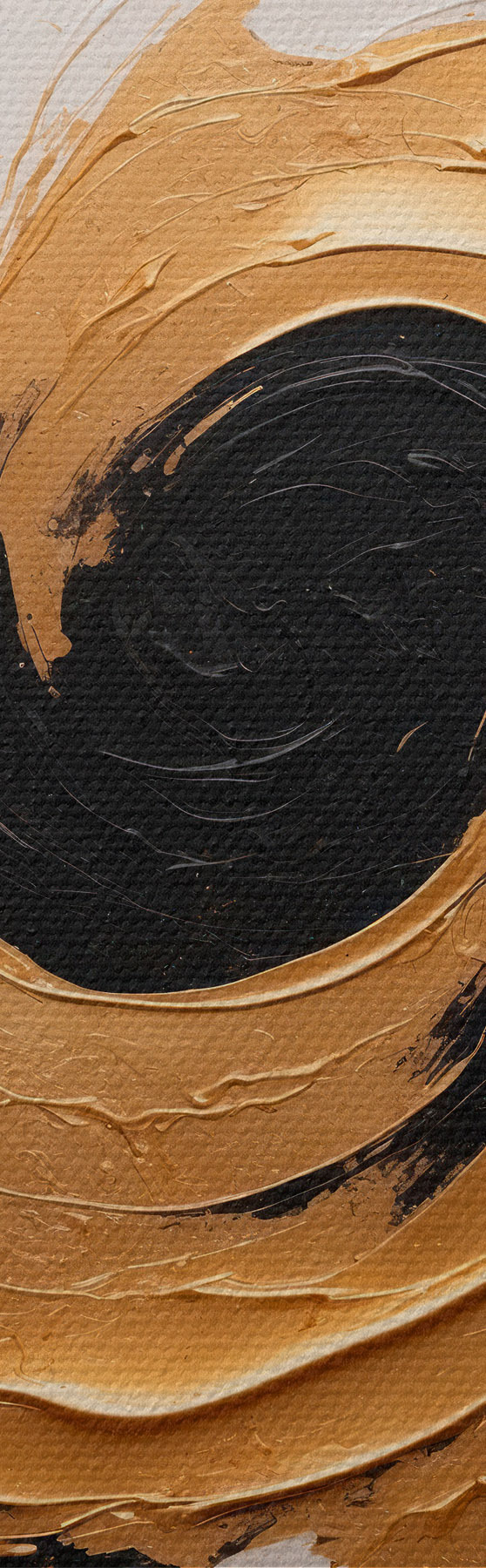 Ronde schilderijen Abstract olieverfschilderij met zwarte en gele werveling r40864