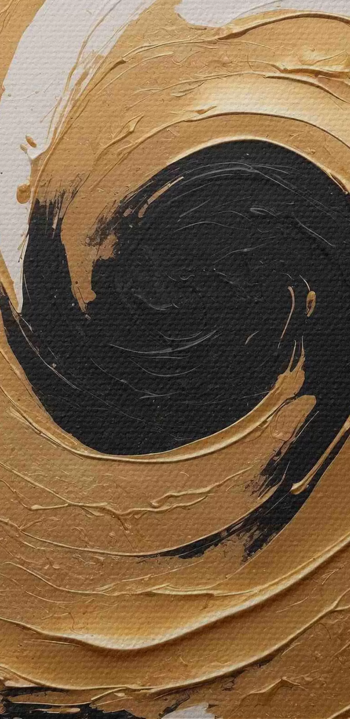 Ronde schilderijen Abstract olieverfschilderij met zwarte en gele werveling r40864