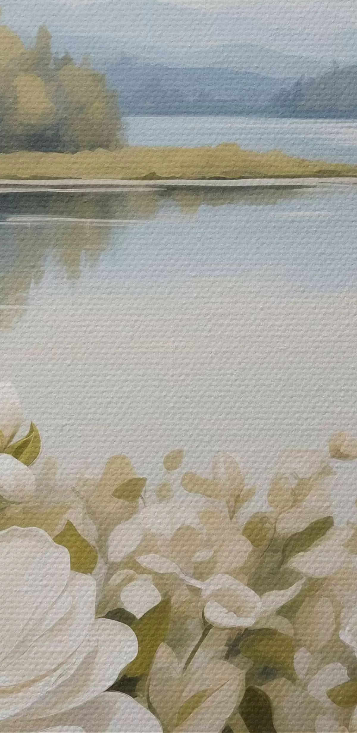 Ronde schilderijen Witte bloemen tegen de achtergrond van de rivier r40869