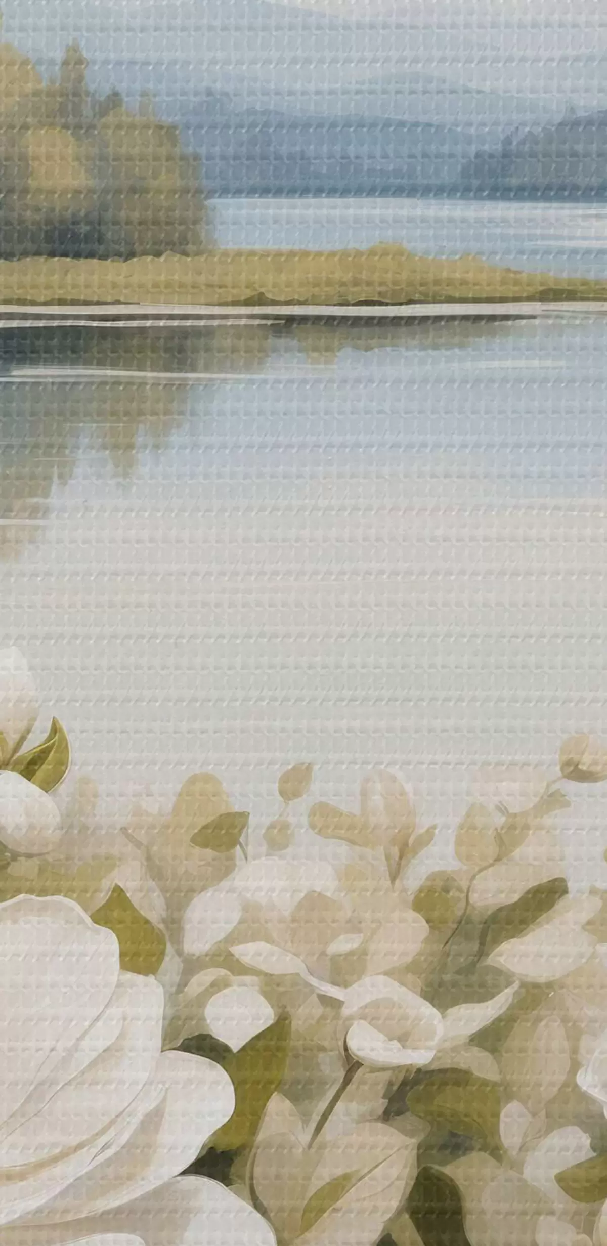 Ronde schilderijen Witte bloemen tegen de achtergrond van de rivier Nr r40869