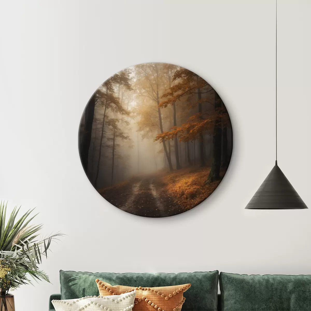 Ronde schilderijen Weg in de herfst, mistig bos Nr r40874