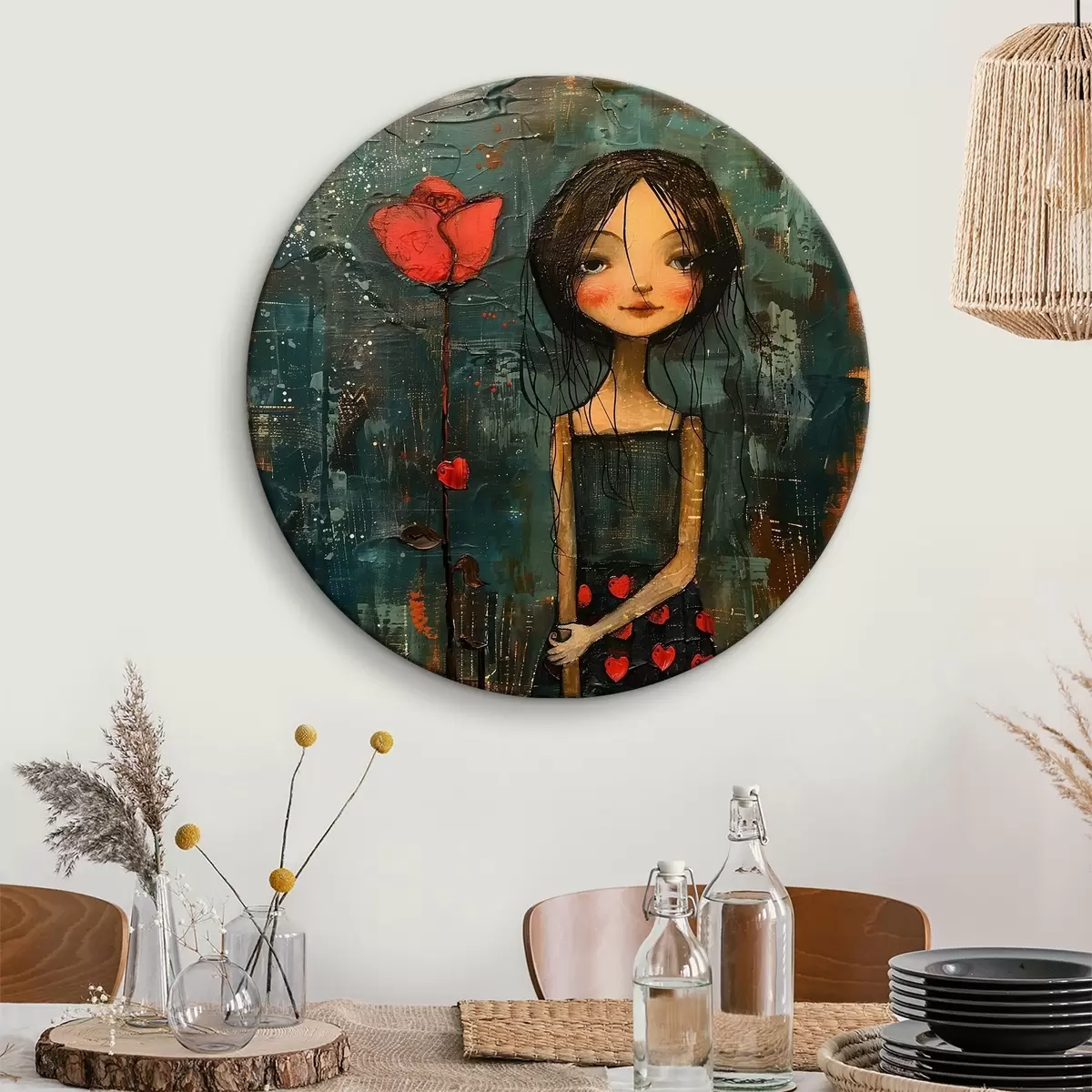 Ronde schilderijen Meisje met een bloem r40897