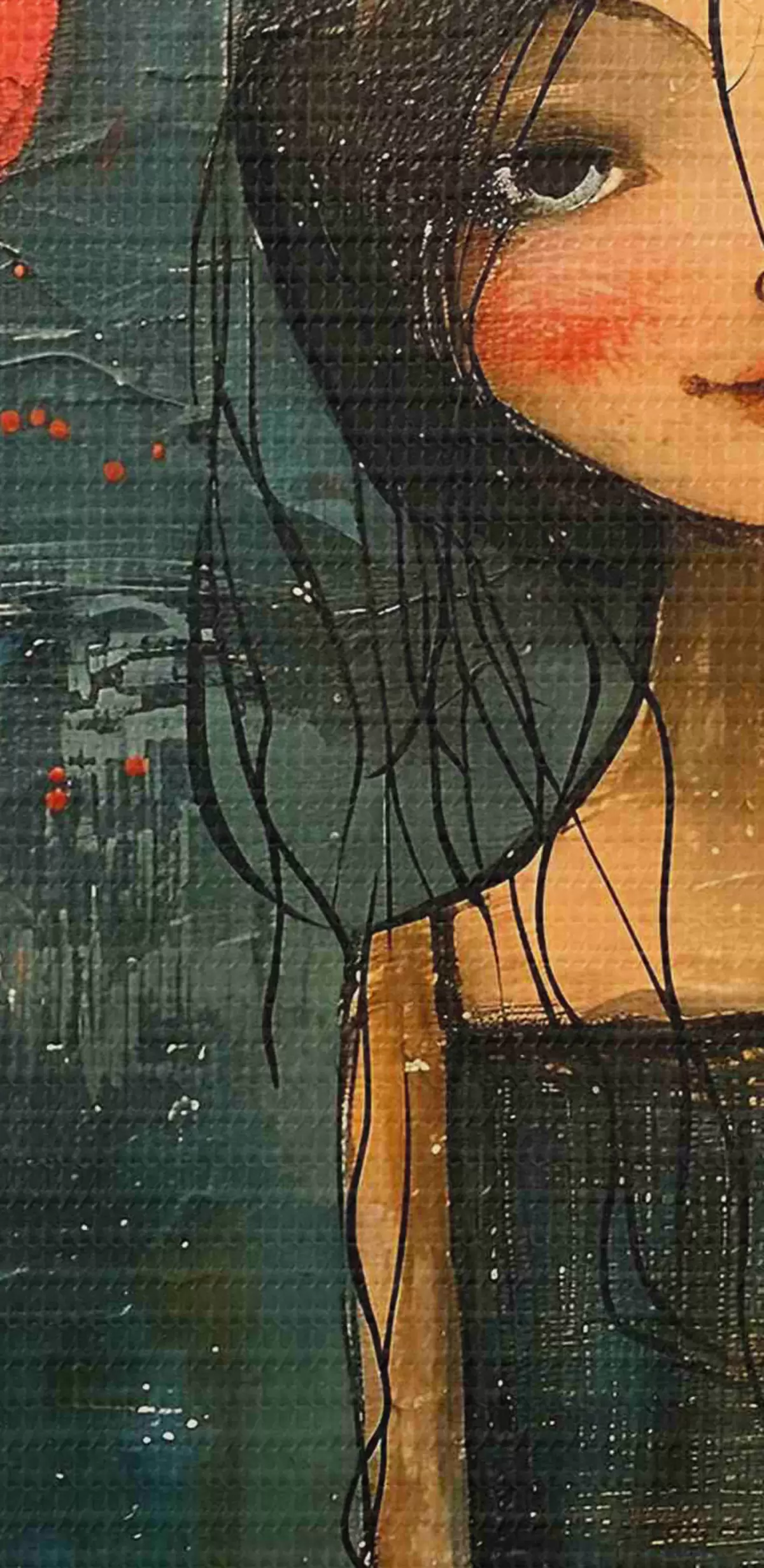 Ronde schilderijen Meisje met een bloem Nr r40897