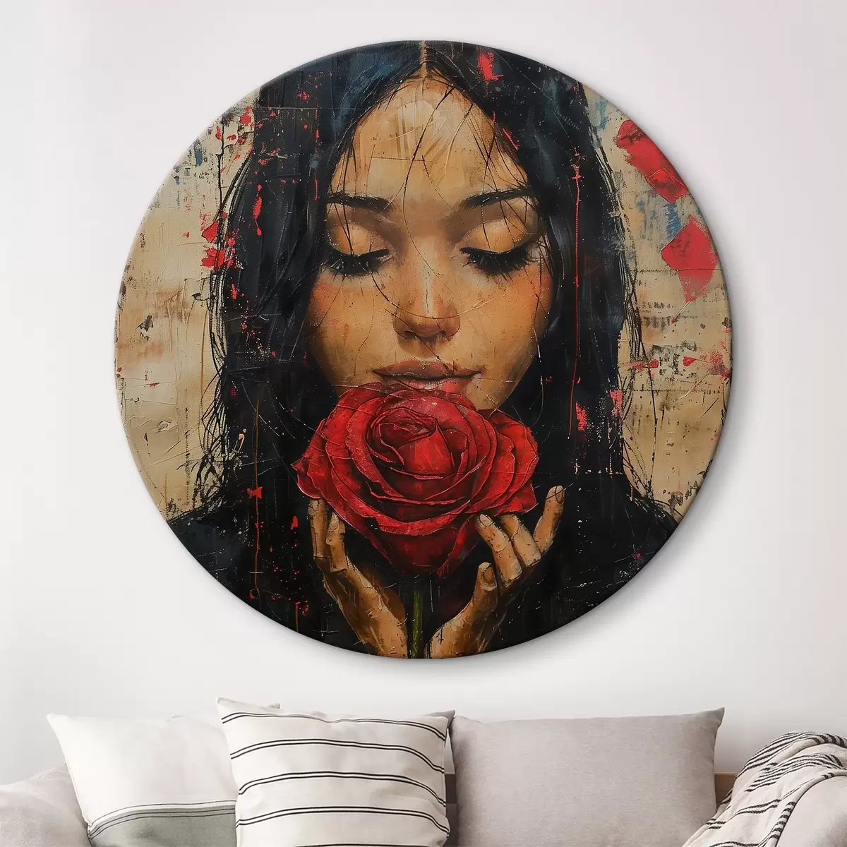 Ronde schilderijen Meisje met rode roos Nr r40898