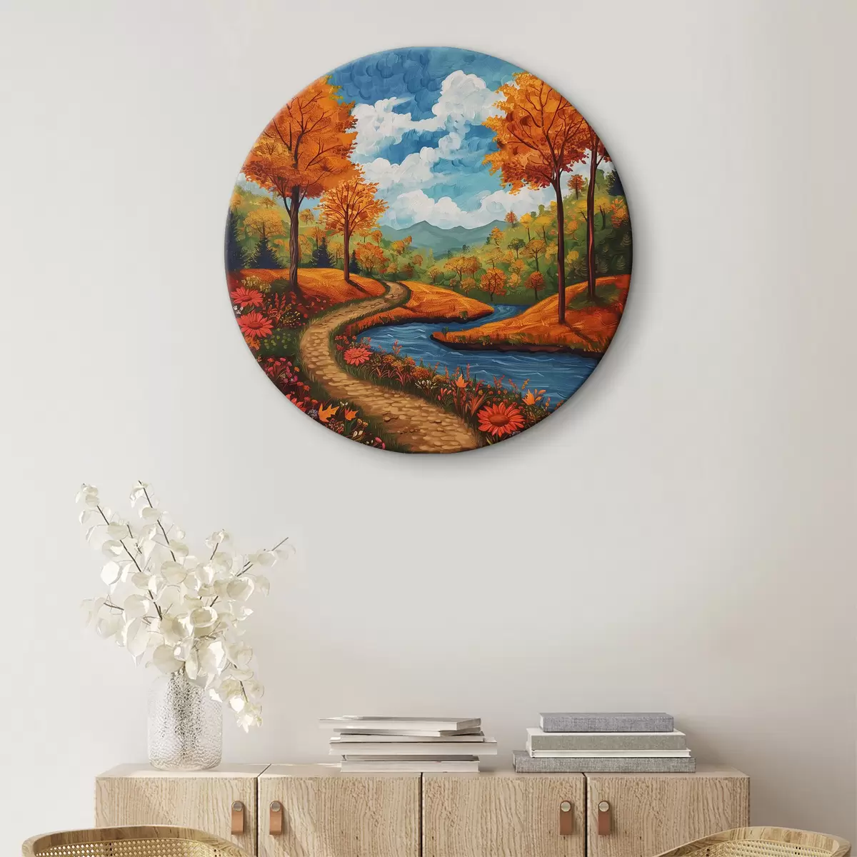 Ronde schilderijen Aquarel herfstlandschap Nr r40900