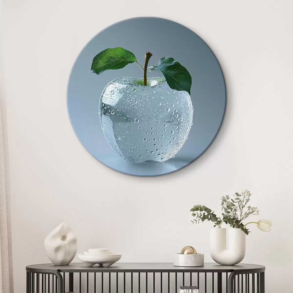 Ronde schilderijen Glazen appel in dauwdruppels Nr r40914