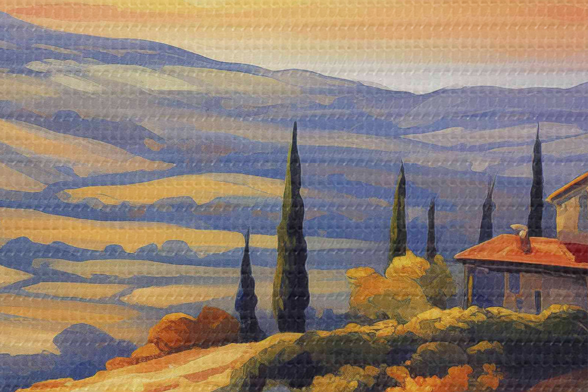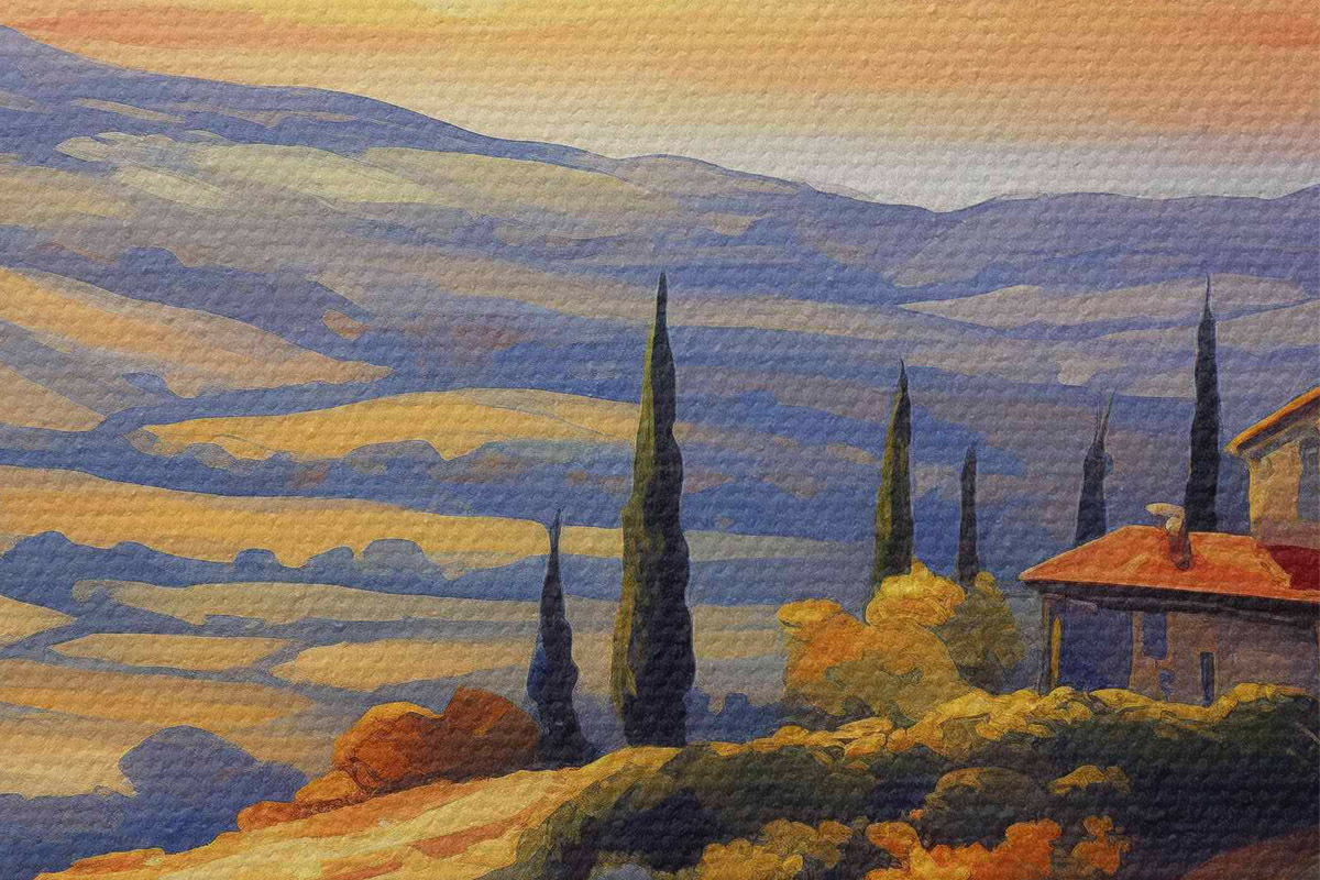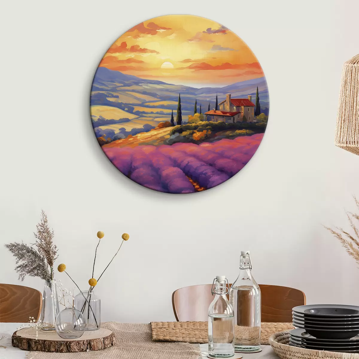 Ronde schilderijen Zonsondergang in Toscane, lavendelvelden, prachtige landschappen, aquarel Nr r40942