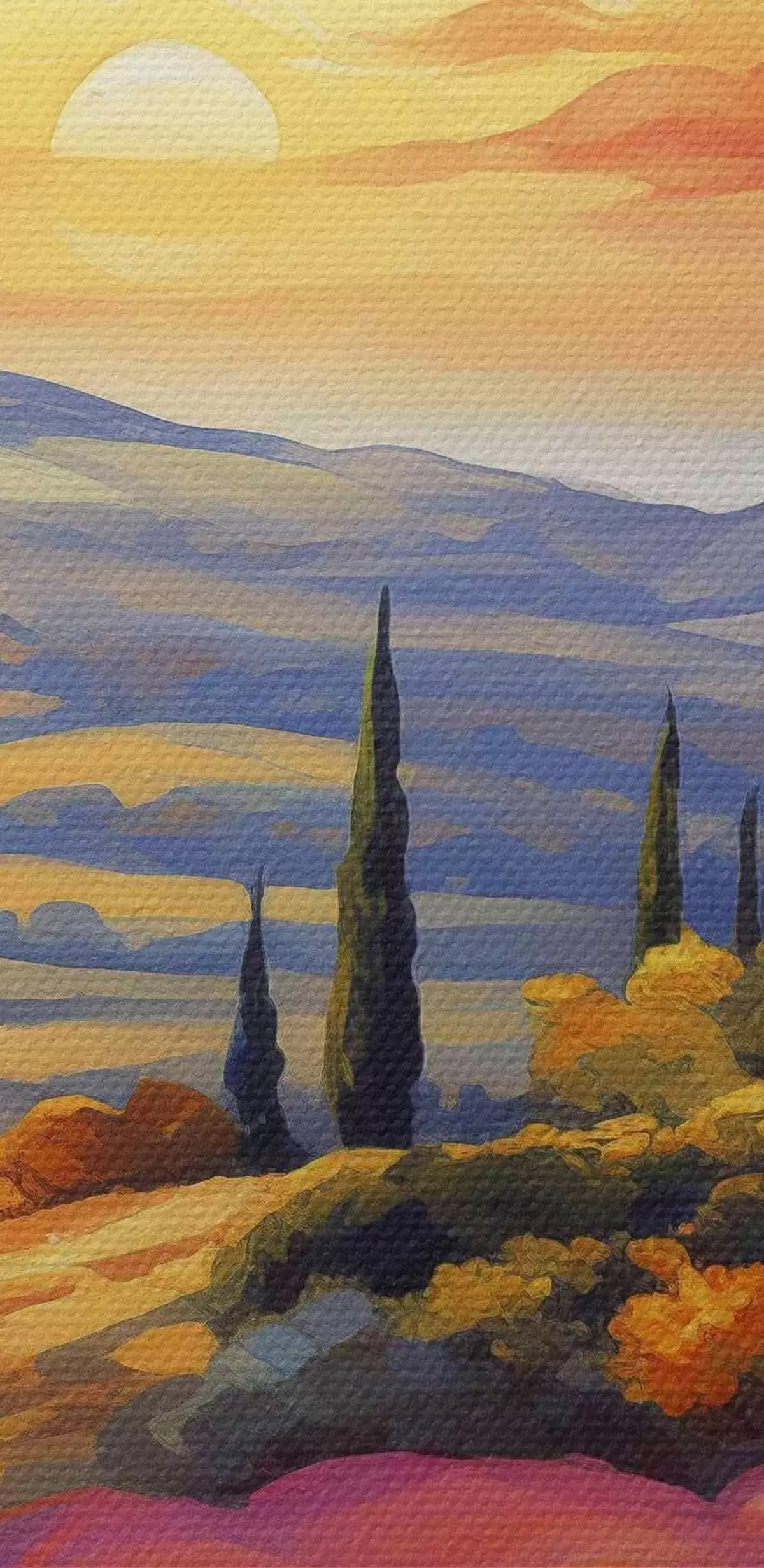Ronde schilderijen Zonsondergang in Toscane, lavendelvelden, prachtige landschappen, aquarel r40942
