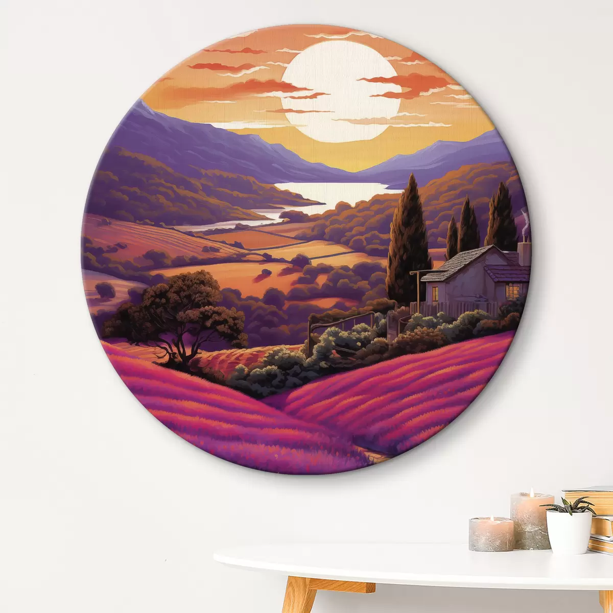 Ronde schilderijen Lavendelvelden, zonsondergang, prachtige landschappen, bergen Nr r40943