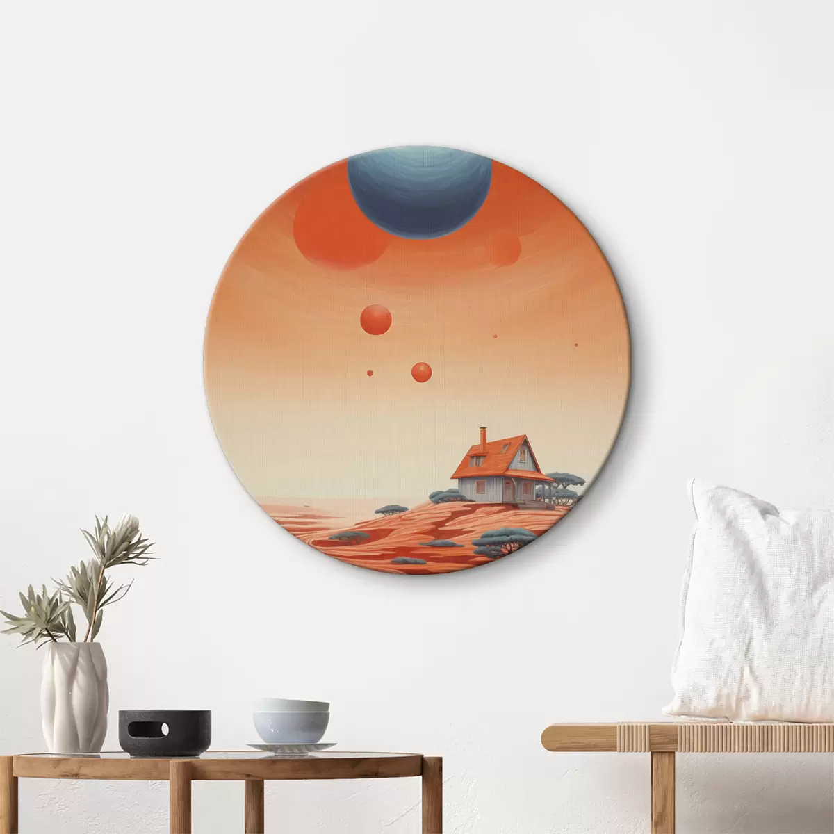 Ronde schilderijen Woestijn met een huis, futuristische kunst, ruimte, planeet r40944