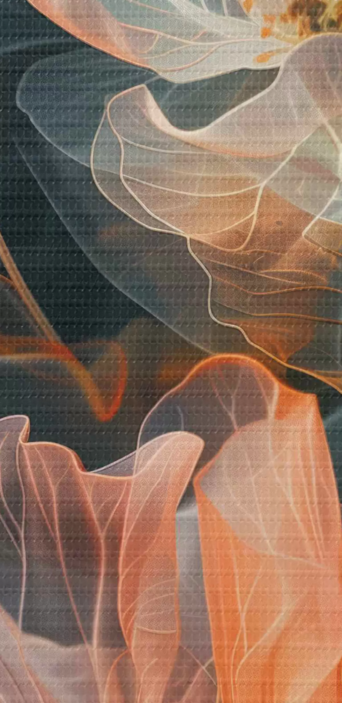 Ronde schilderijen Heldere, doorschijnende bloemen gehuld in rook op een donkere achtergrond Nr r40968