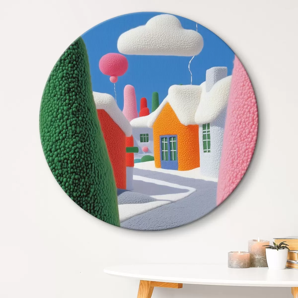 Ronde schilderijen Straat met wolken en vilten ballonnen Nr r40970