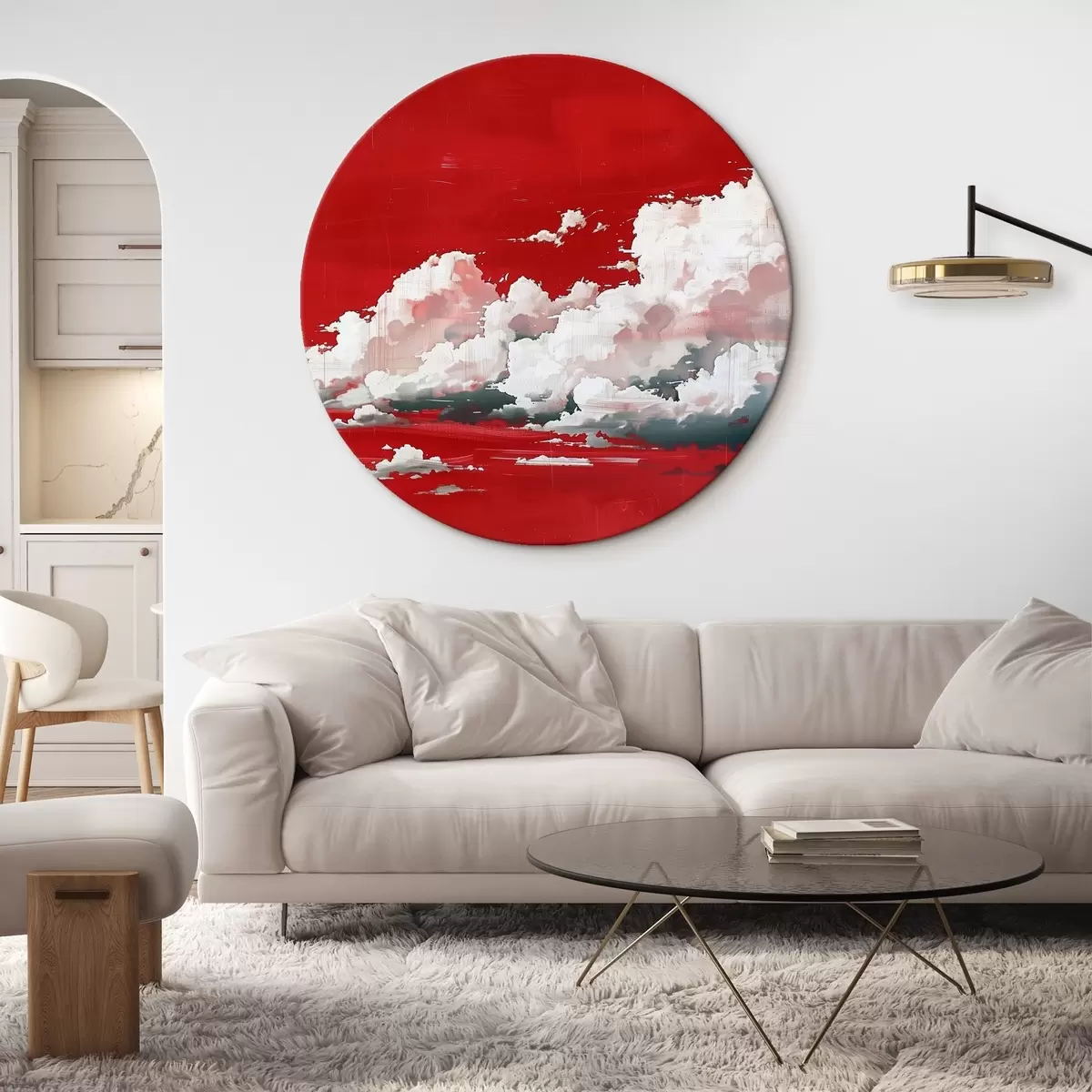 Ronde schilderijen Stormwolken op een rode achtergrond Nr r40987
