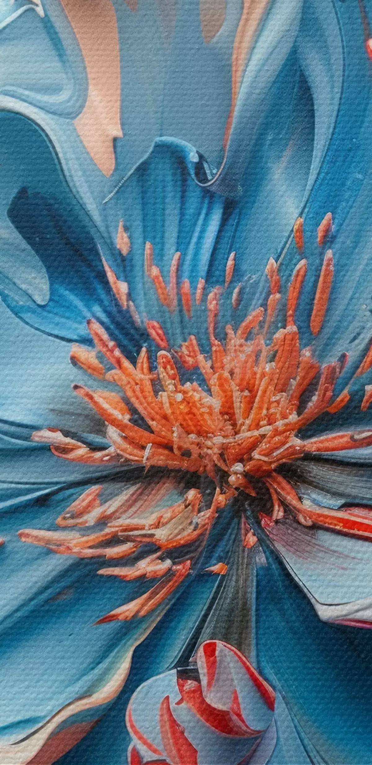 Ronde schilderijen Magische klaproos met volumineuze bloemblaadjes in perzik- en blauwtinten Nr r40992