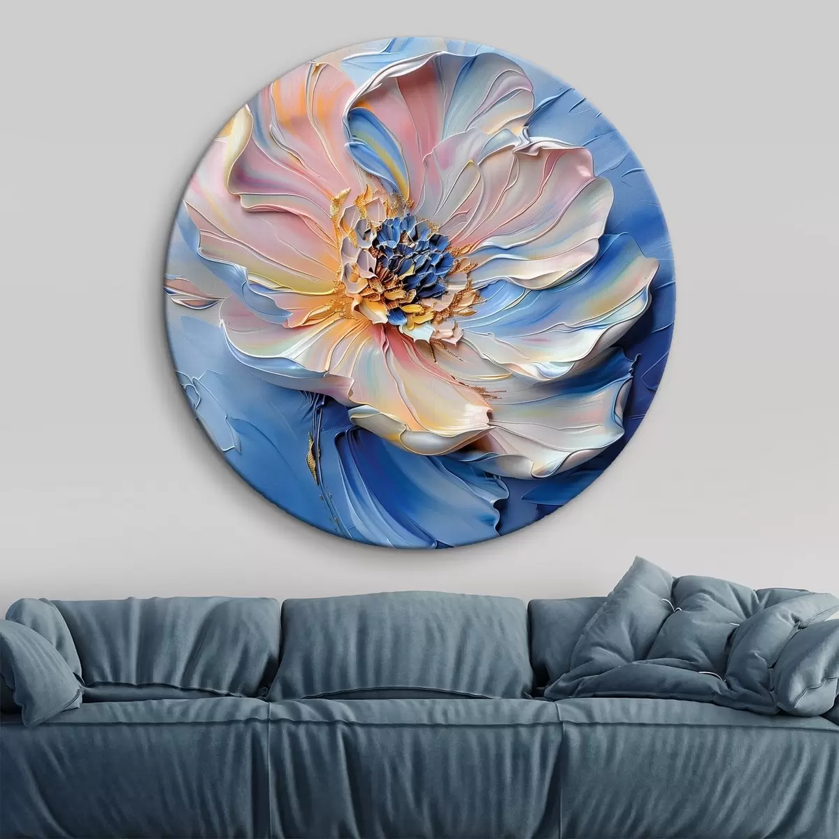 Ronde schilderijen Een grote bloemknop met brede verfstreken r40993