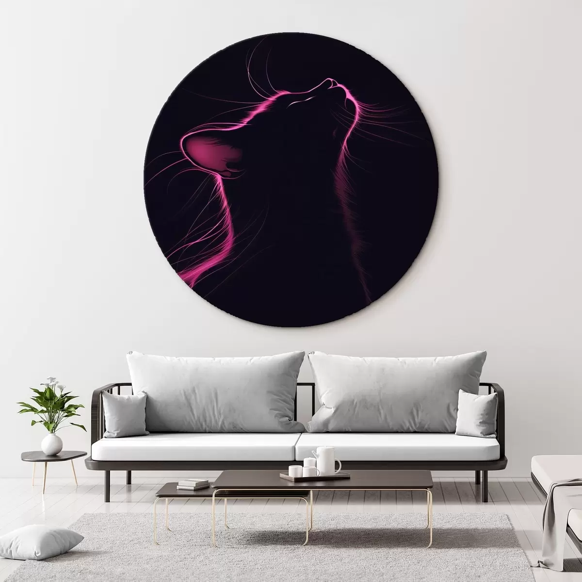 Ronde schilderijen Roze neonkat op zwarte achtergrond Nr r40994