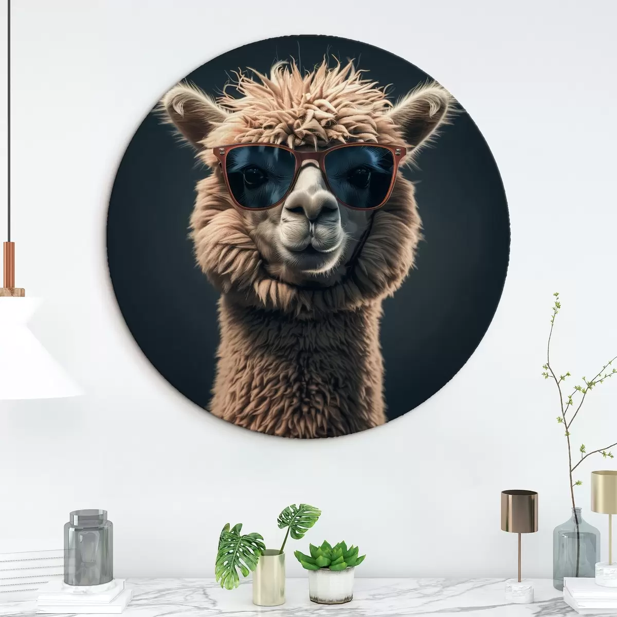 Ronde schilderijen Stijlvolle lama met bril Nr r40995