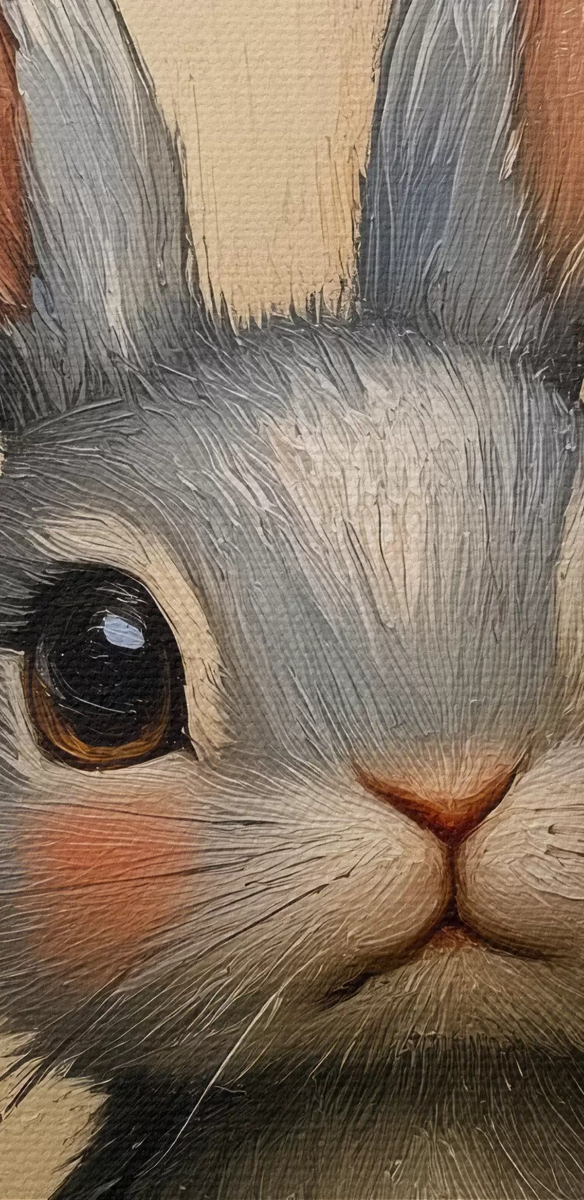 Ronde schilderijen Konijn in het veld tussen bloemen met penseelstreken Nr r40999